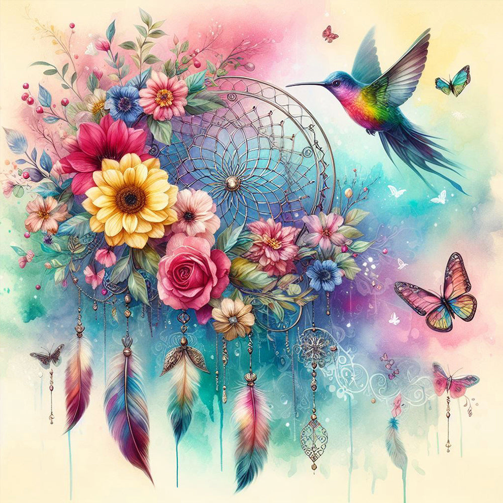 2pcs AB Diamond Painting - Full Round - Butterfly Hummingbird Dream Catcher (40*40CM)