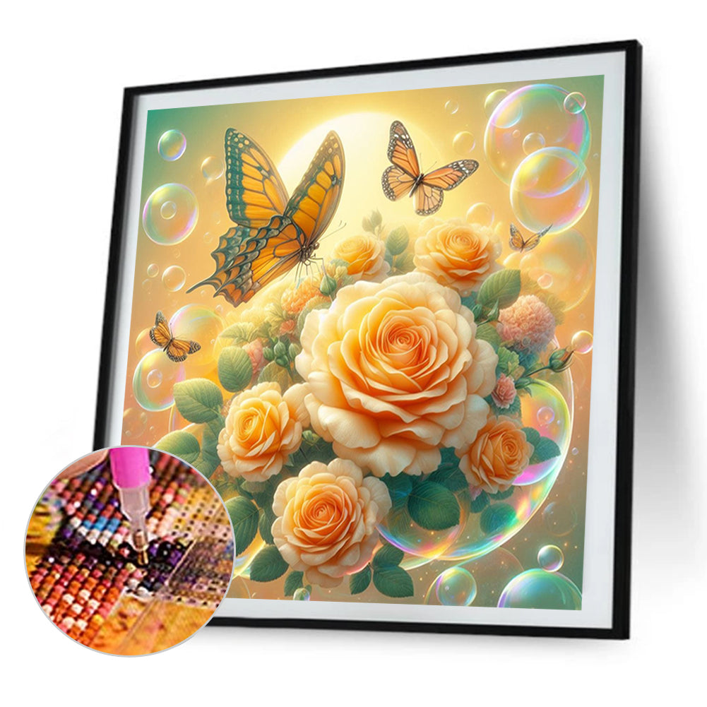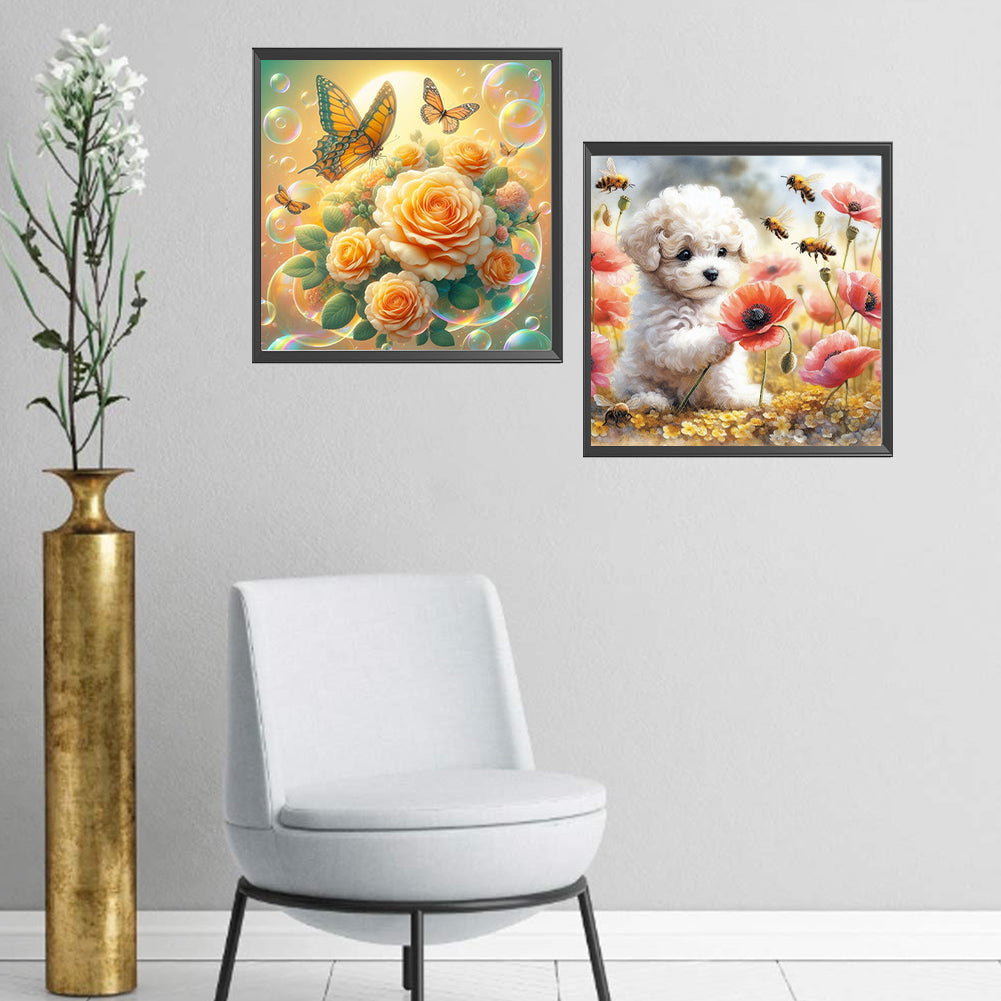 2pcs AB Diamond Painting - Full Round - Champagne Rose Butterfly Poppy Poodle (40*40CM)