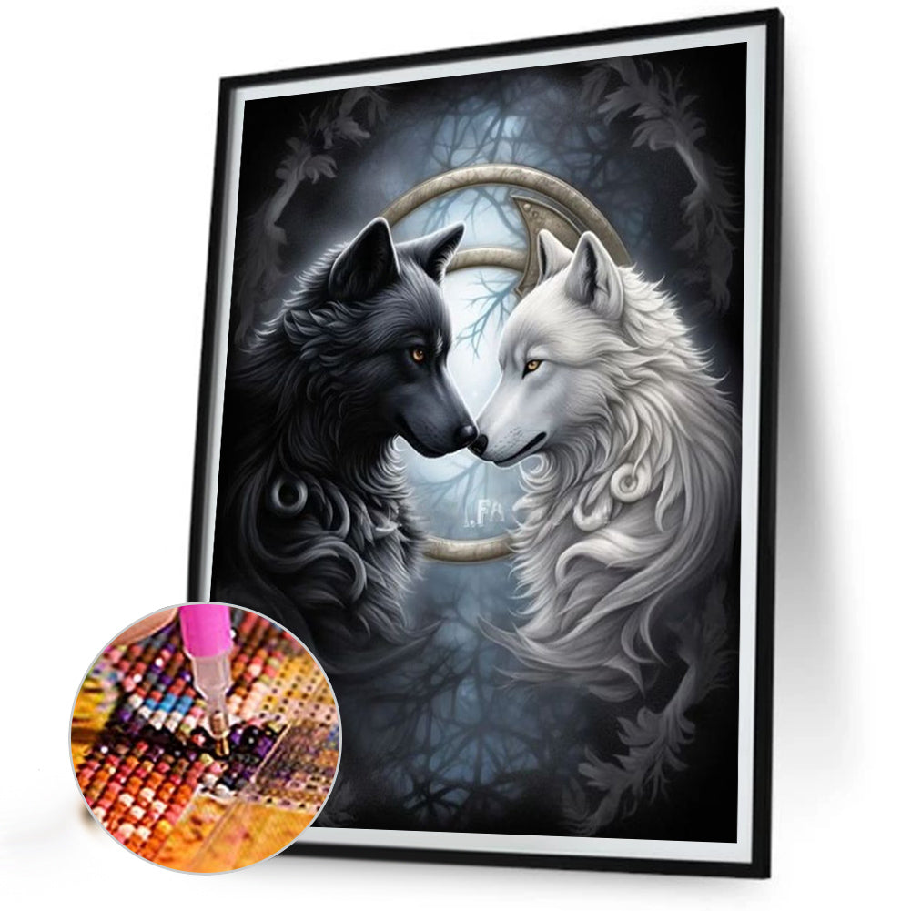 AB Diamond Painting - Full Round - black and white twin wolves (40*50CM)