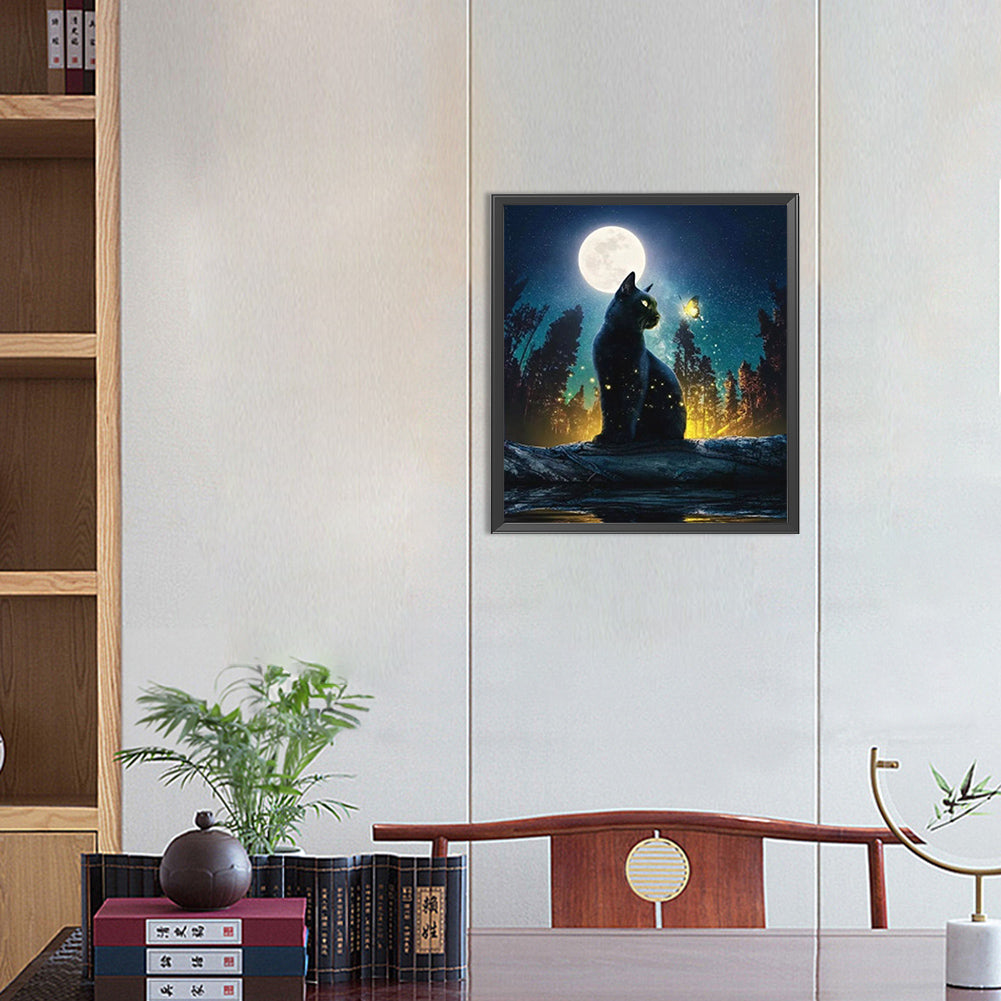 AB Diamond Painting - Full Round - Black cat under the moon (45*50CM)