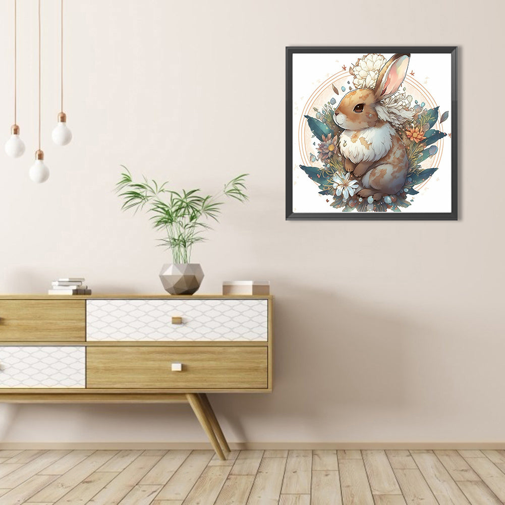AB Diamond Painting - Full Round - Brown bunny with flowers (40*40CM)
