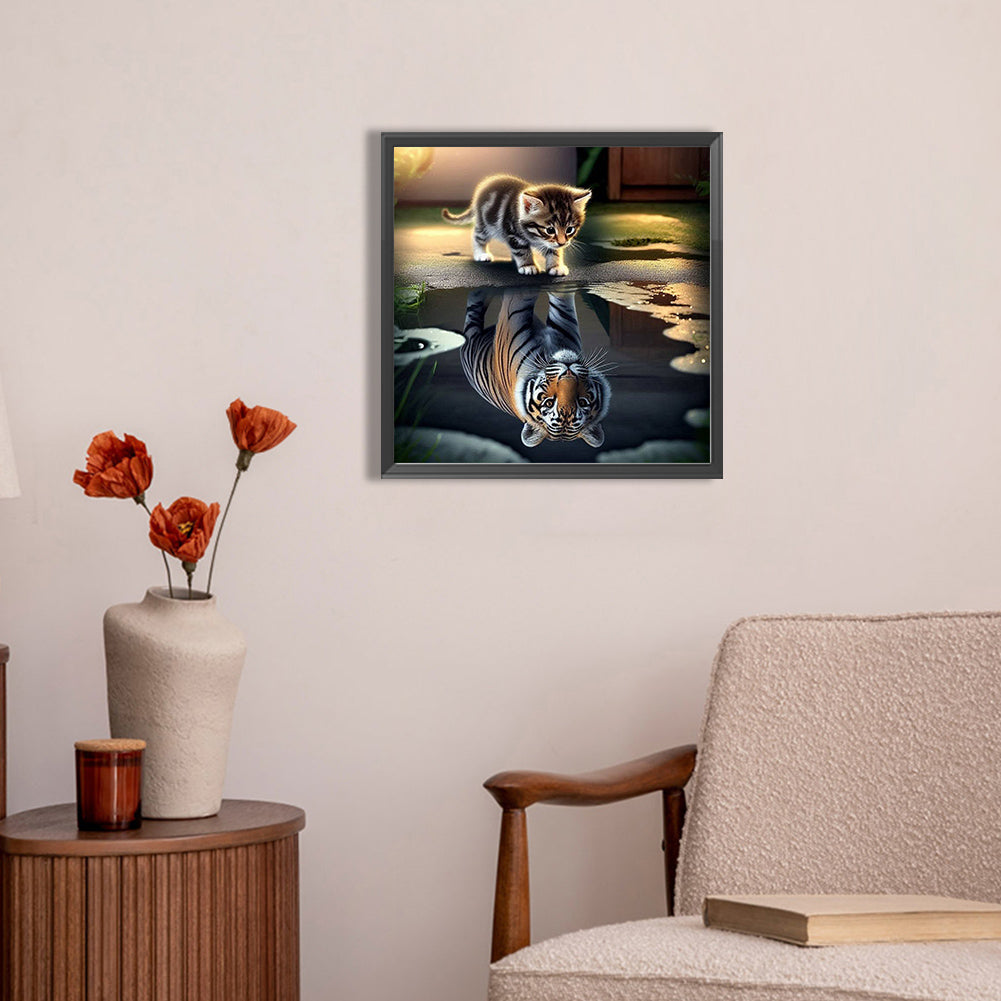 AB Diamond Painting - Full Round - Cat reflection tiger (45*45CM)