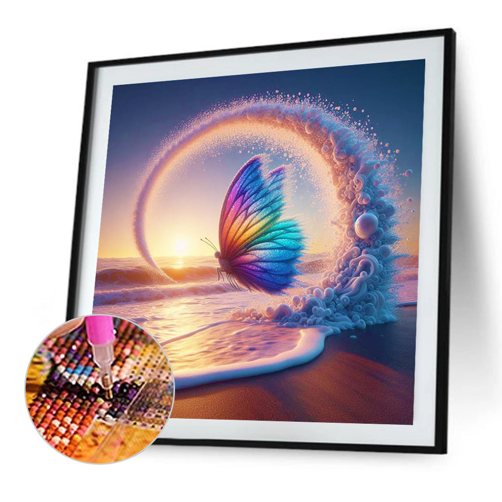 AB Diamond Painting - Full Round - Colorful butterfly on the beach (40*40CM)