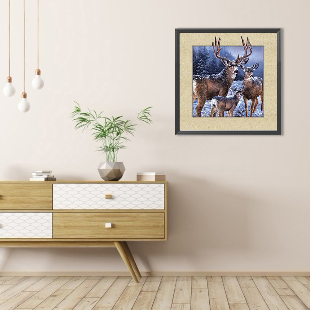 AB Diamond Painting - Full Round - Elk in the snow (40*40CM)