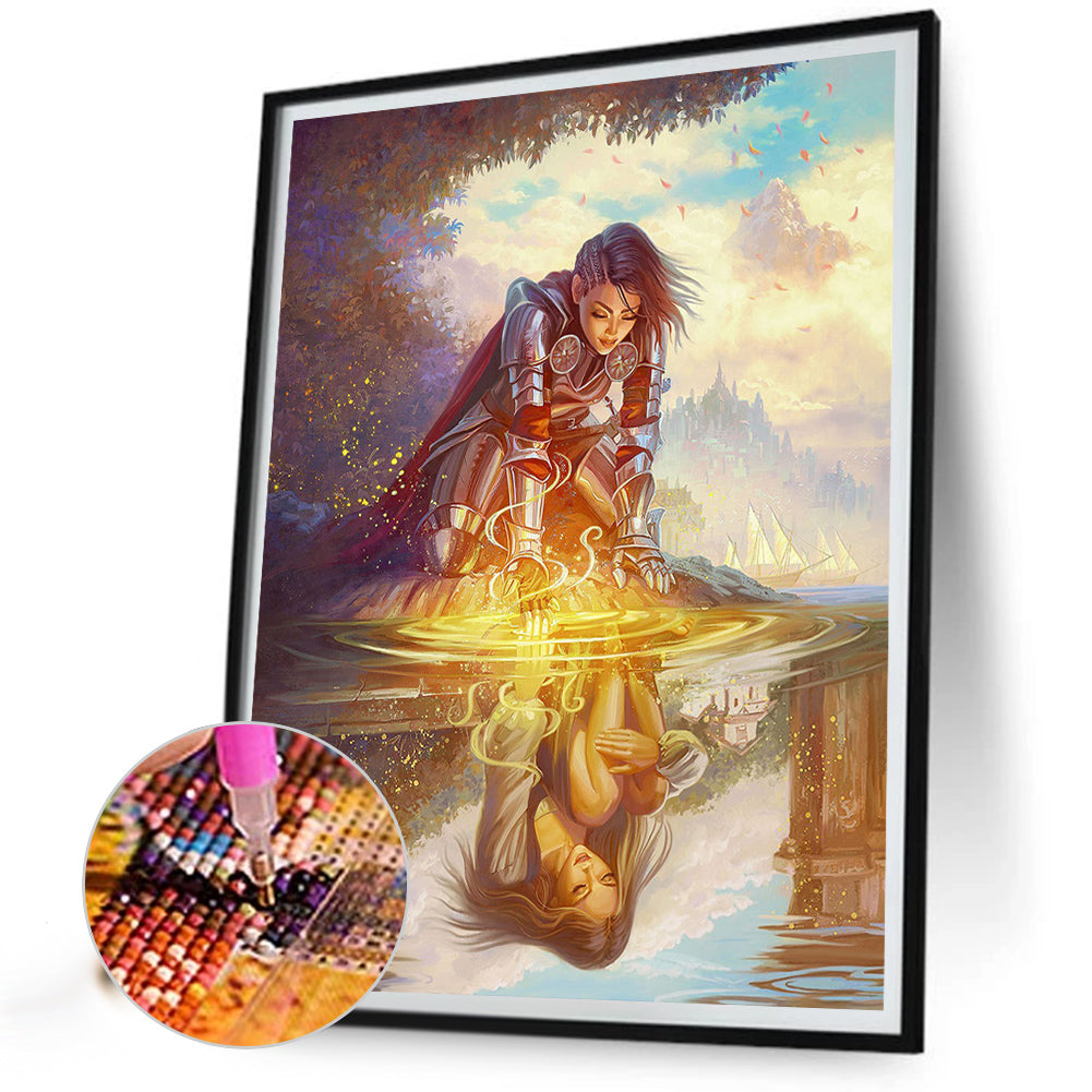 AB Diamond Painting - Full Round - female knight by the lake (40*50CM)