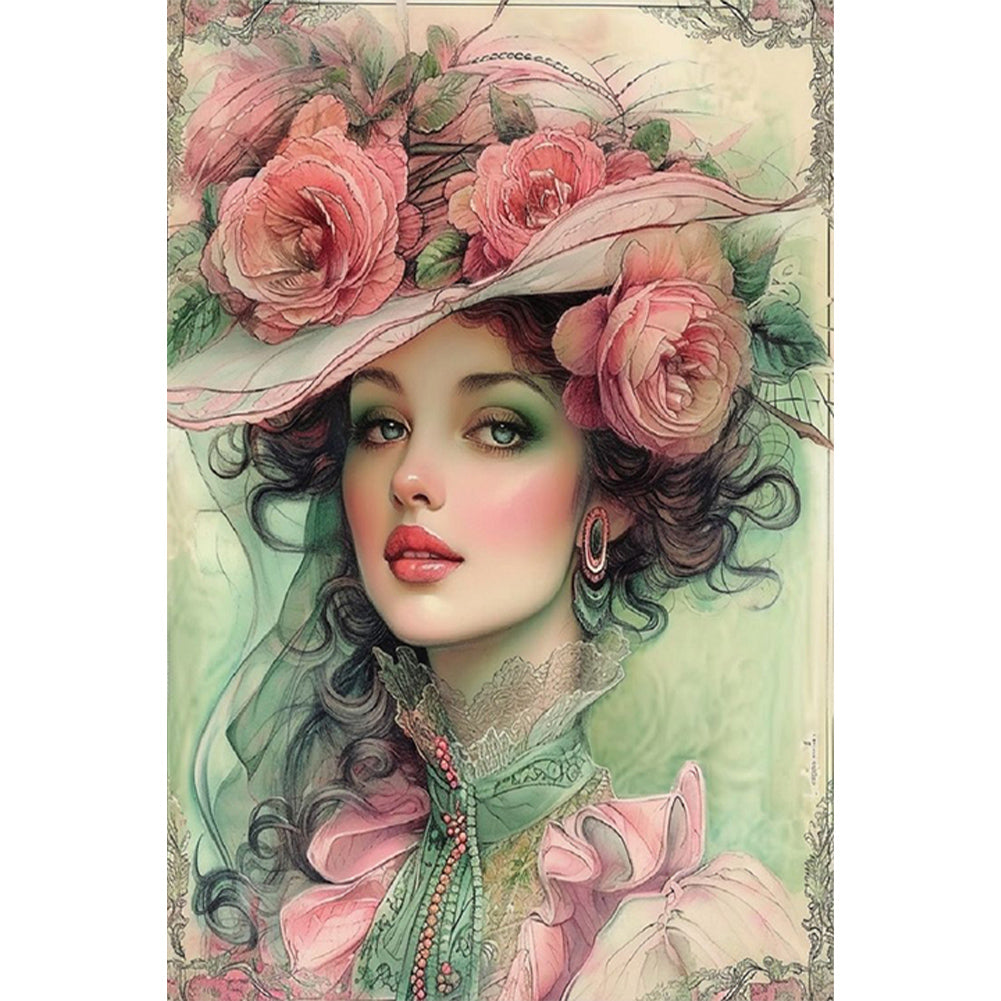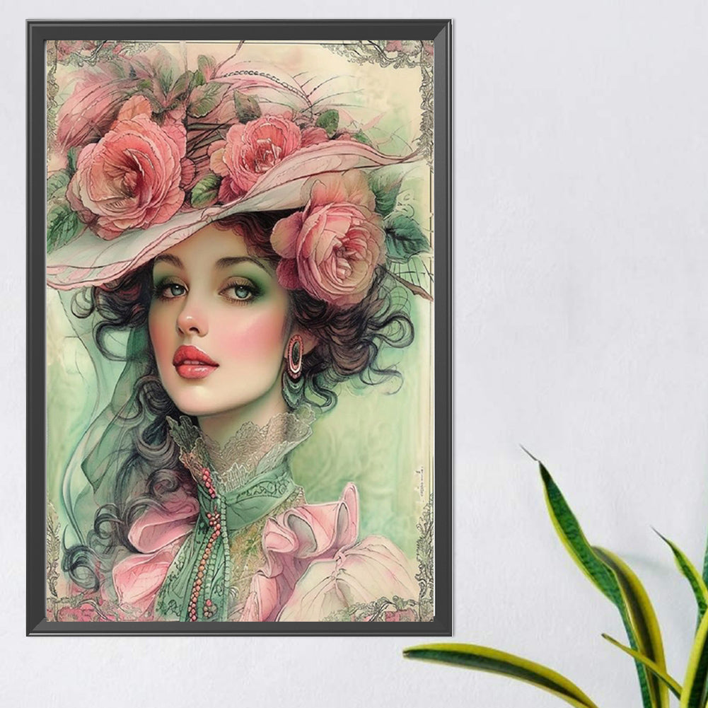 AB Diamond Painting - Full Round - flower hat girl (40*60CM)
