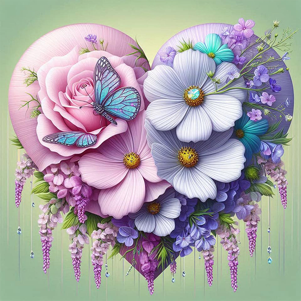AB Diamond Painting - Full Round - Flowers, butterflies, hearts (40*40CM)