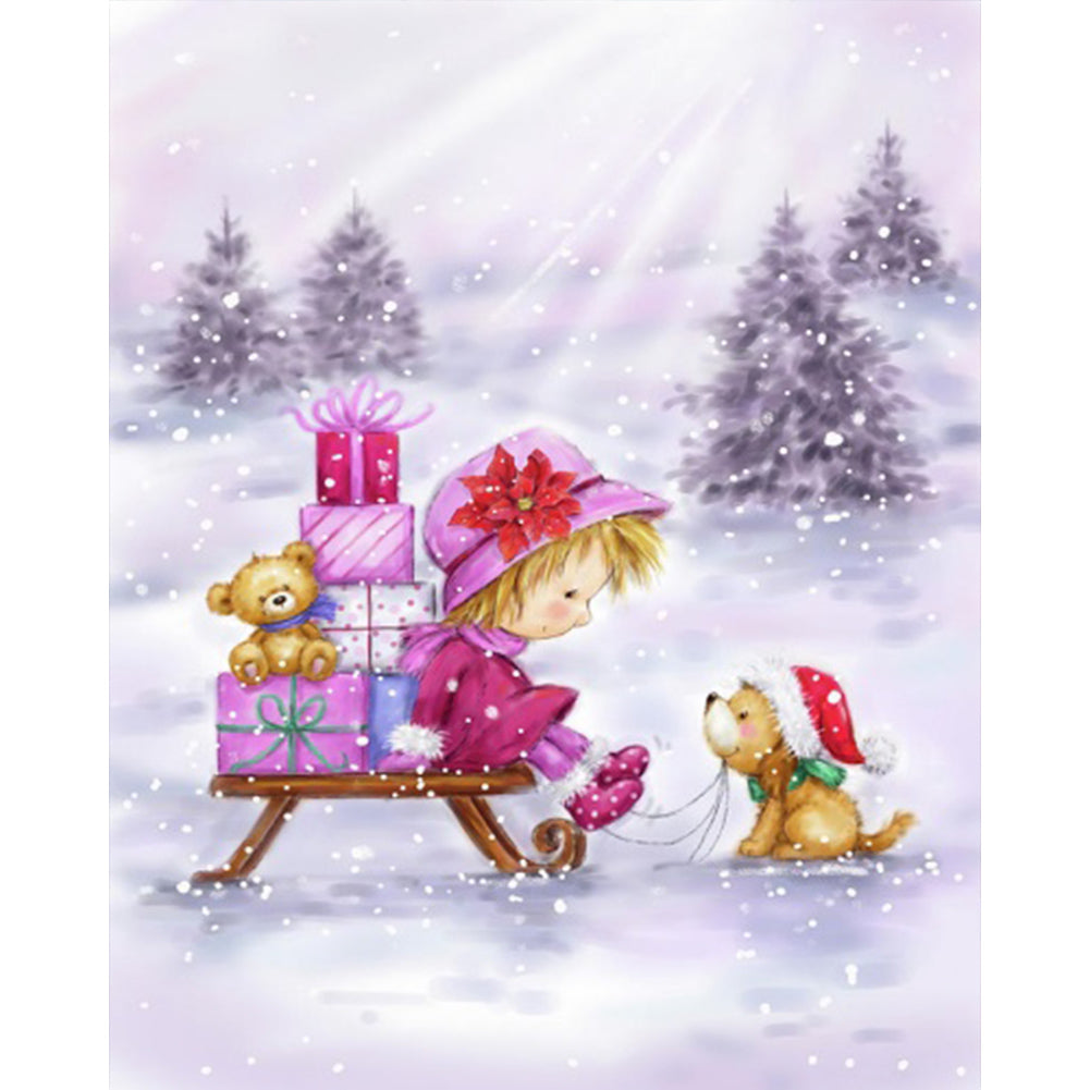 AB Diamond Painting - Full Round - Girl and puppy in the snow (40*50CM)