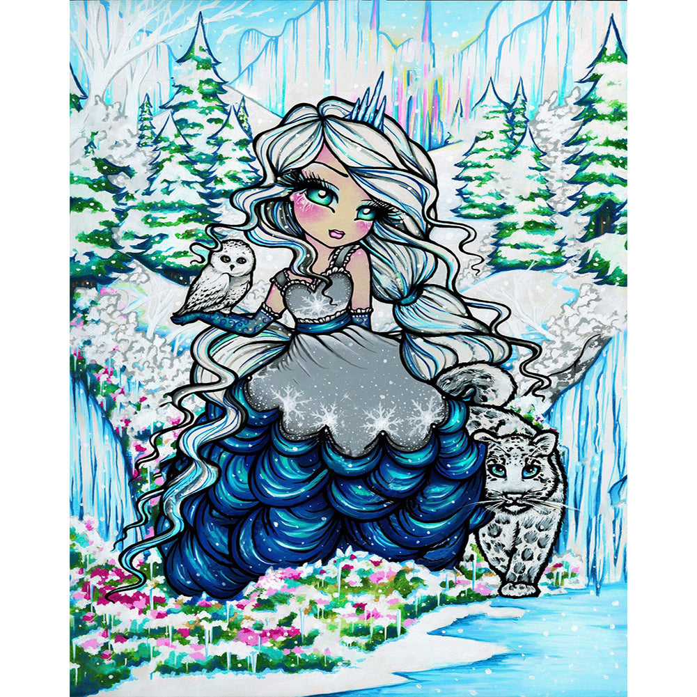 AB Diamond Painting - Full Round - Girl and snow creatures in the snow (40*50CM)