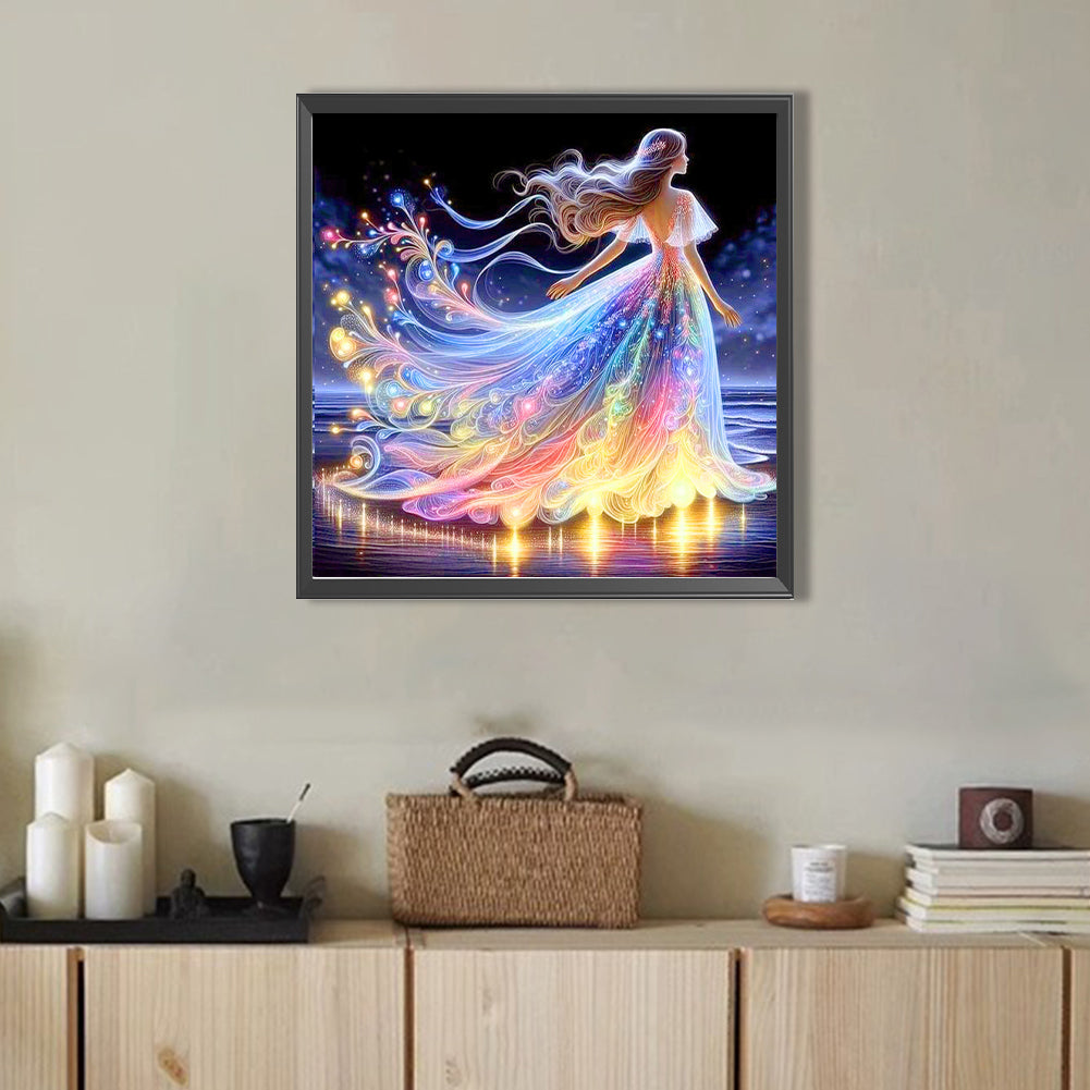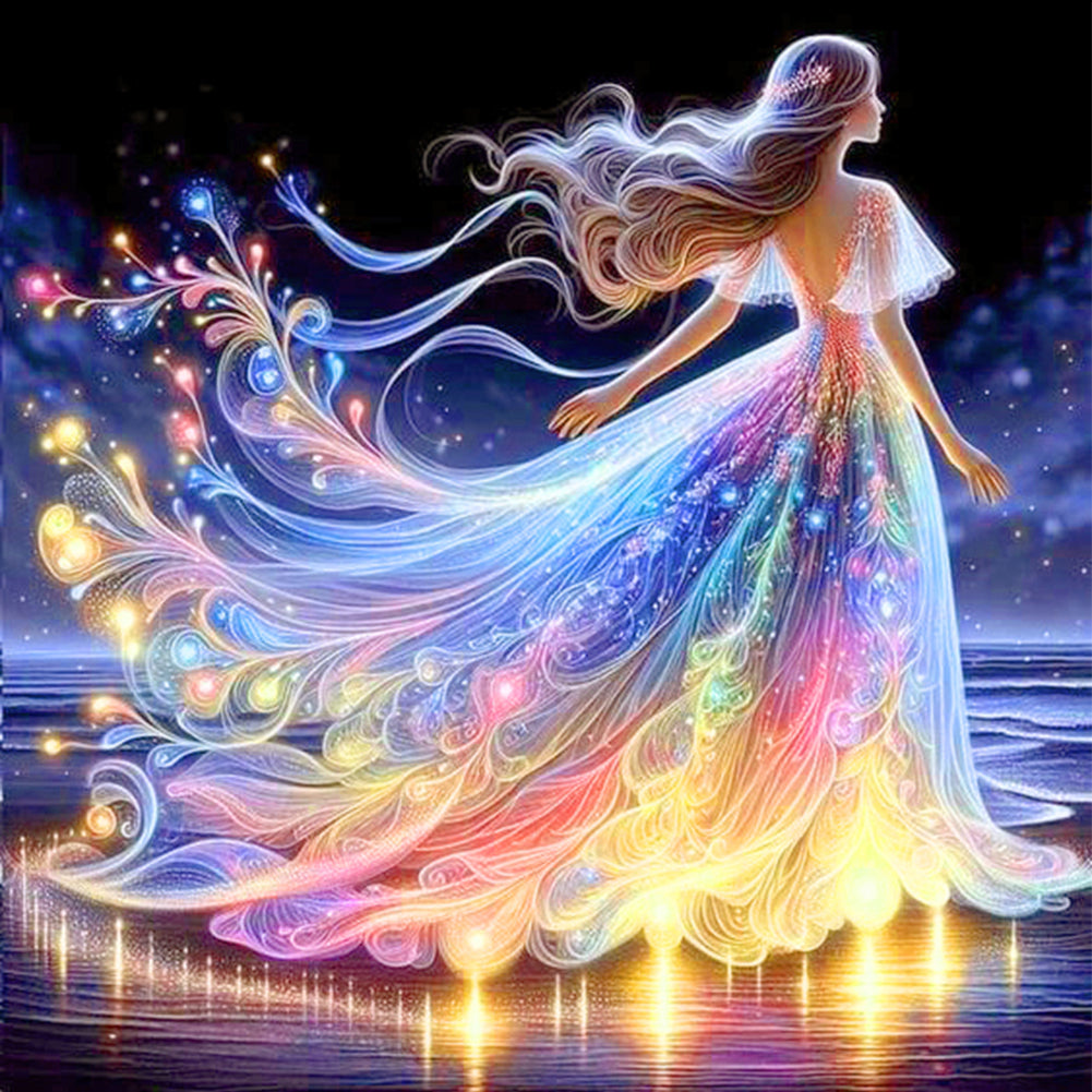 AB Diamond Painting - Full Round - Girl in a long skirt on the beach (40*40CM)