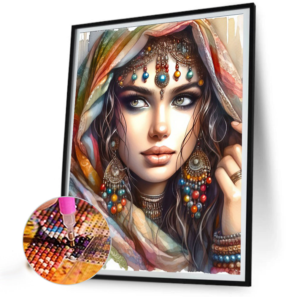 AB Diamond Painting - Full Round - Girl with ethnic style (40*50CM)