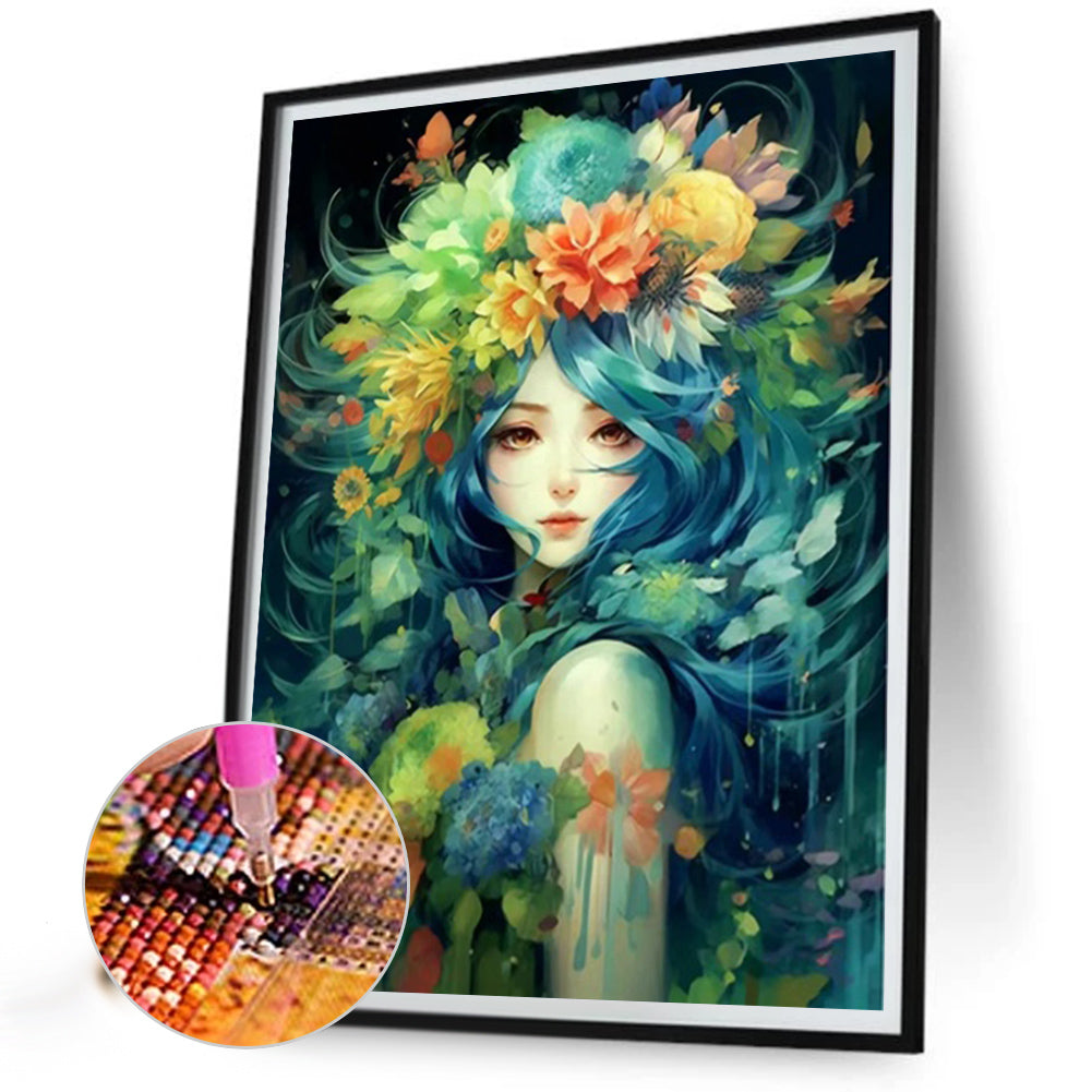 AB Diamond Painting - Full Round - Girl with garland (40*50CM)