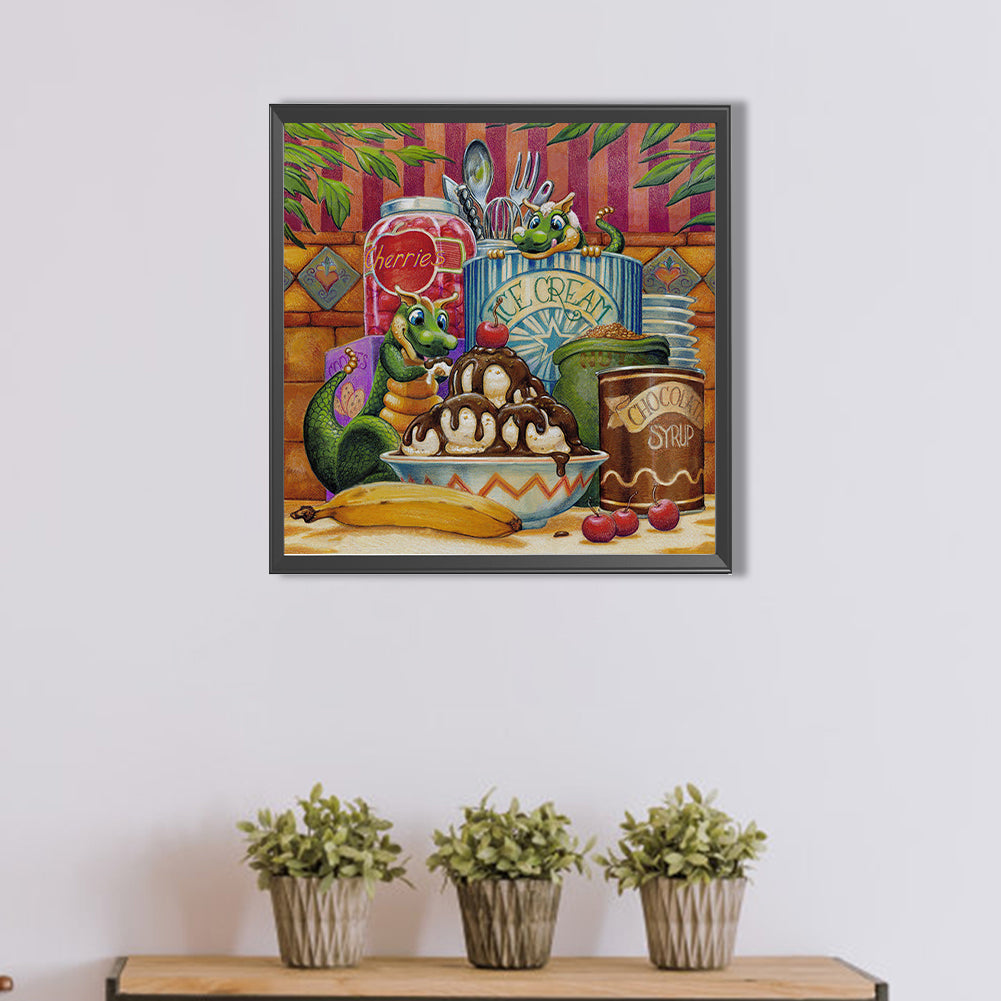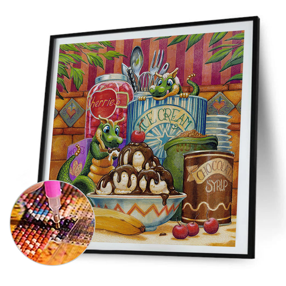 AB Diamond Painting - Full Round - green dragon and dessert (45*45CM)