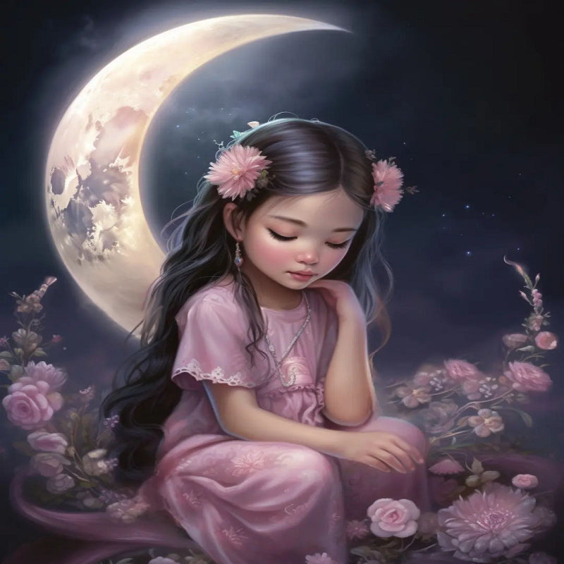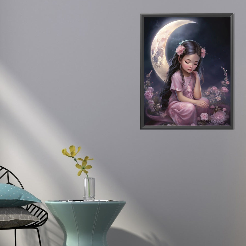 AB Diamond Painting - Full Round - little girl under the moon (40*50CM)