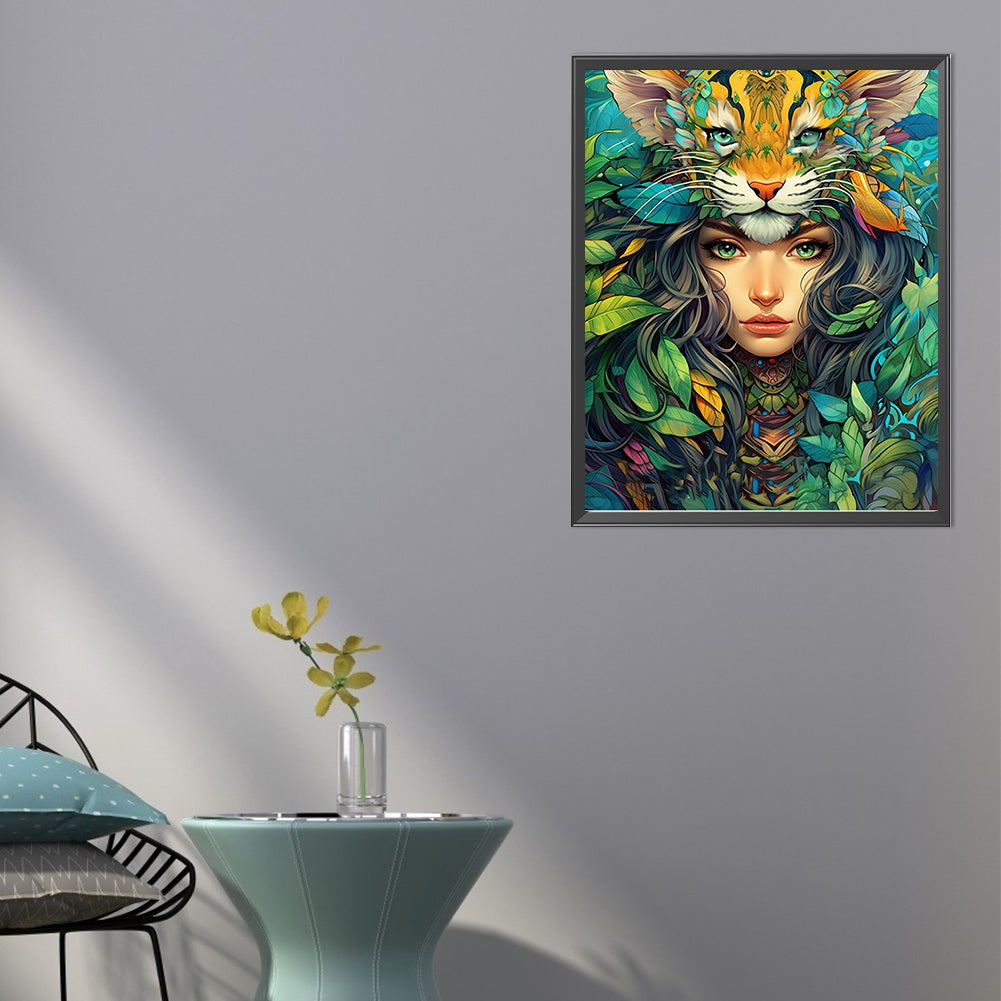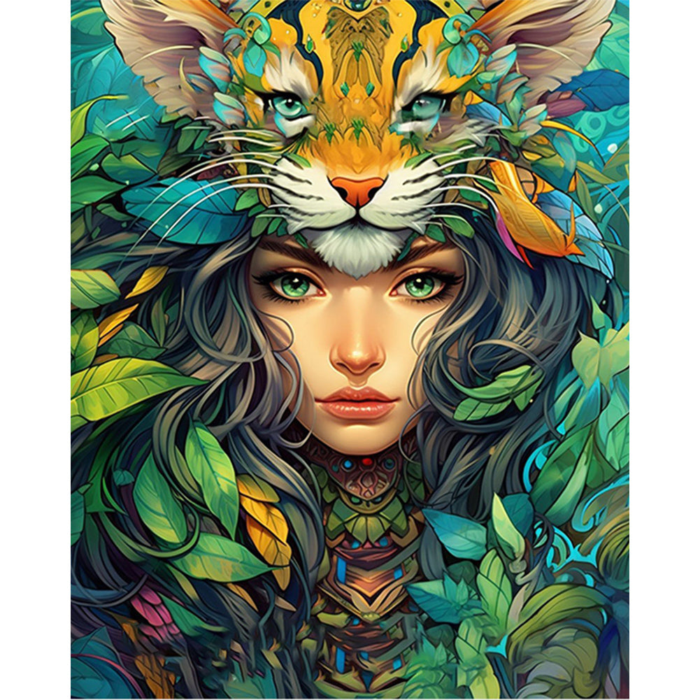 AB Diamond Painting - Full Round - Mysterious jungle girl (40*50CM)