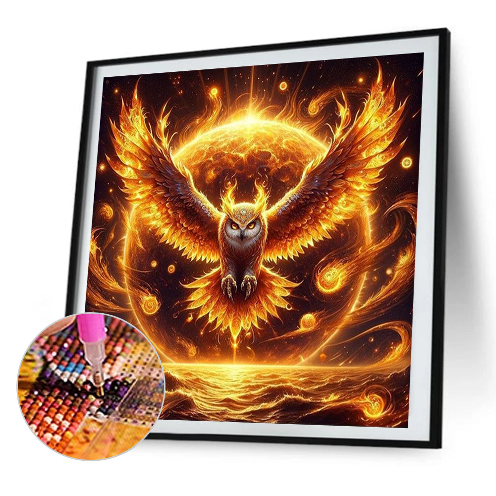 AB Diamond Painting - Full Round - Owl through the flames (30*30CM)