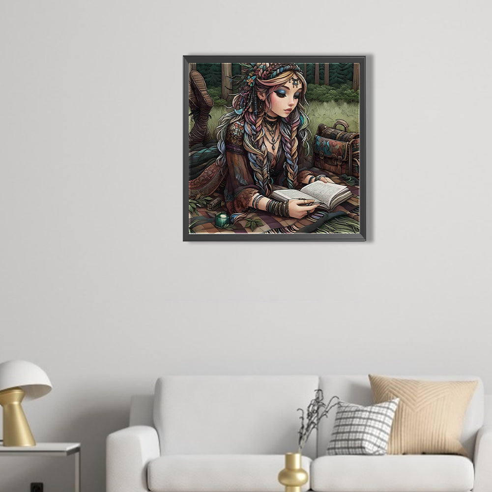 AB Diamond Painting - Full Round - Reading girl in the forest (40*40CM)