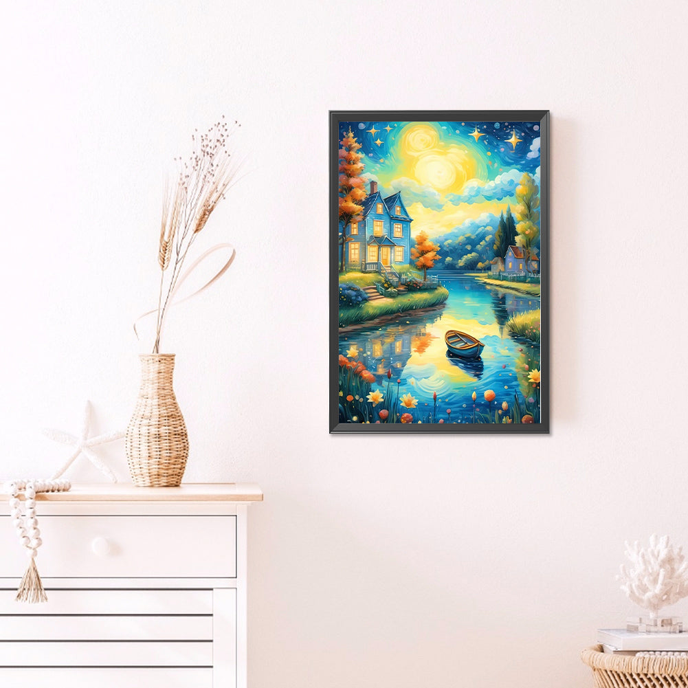 AB Diamond Painting - Full Round - Riverside Town At Night (40*60CM)