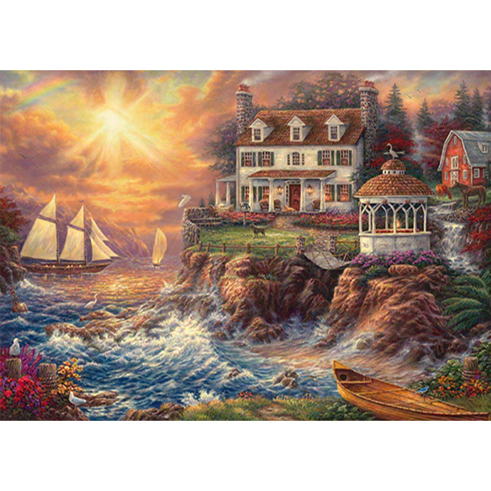 AB Diamond Painting - Full Round - seaside town (70*50CM)