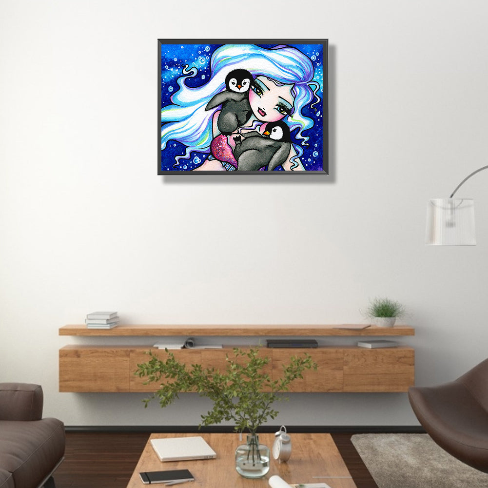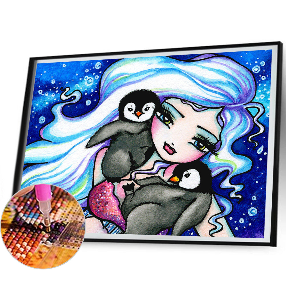 AB Diamond Painting - Full Round - Snow girl and little penguin (50*40CM)
