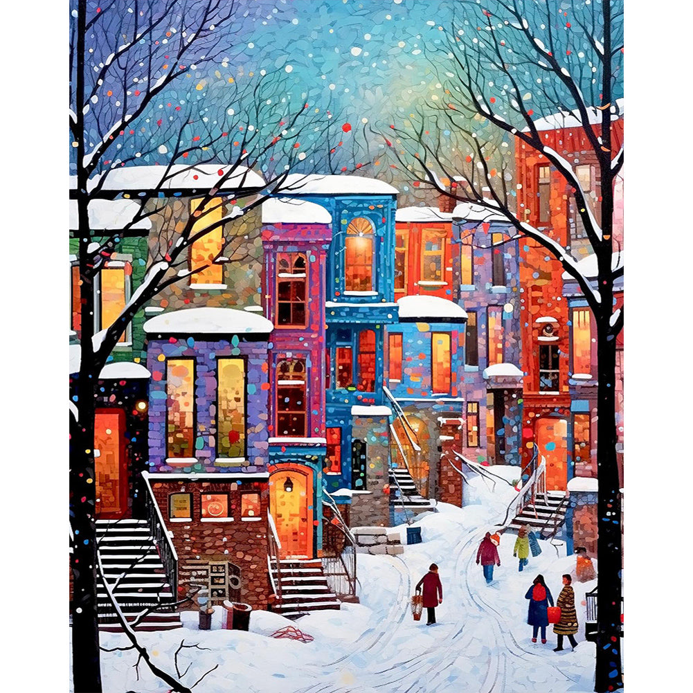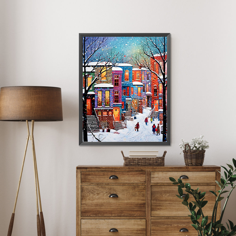 AB Diamond Painting - Full Round - Snow scene in town (40*50CM)