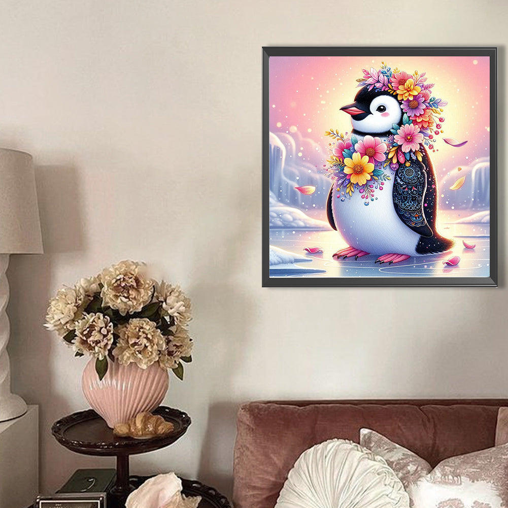 AB Diamond Painting - Full Round - Sunset flower penguin (30*30CM)