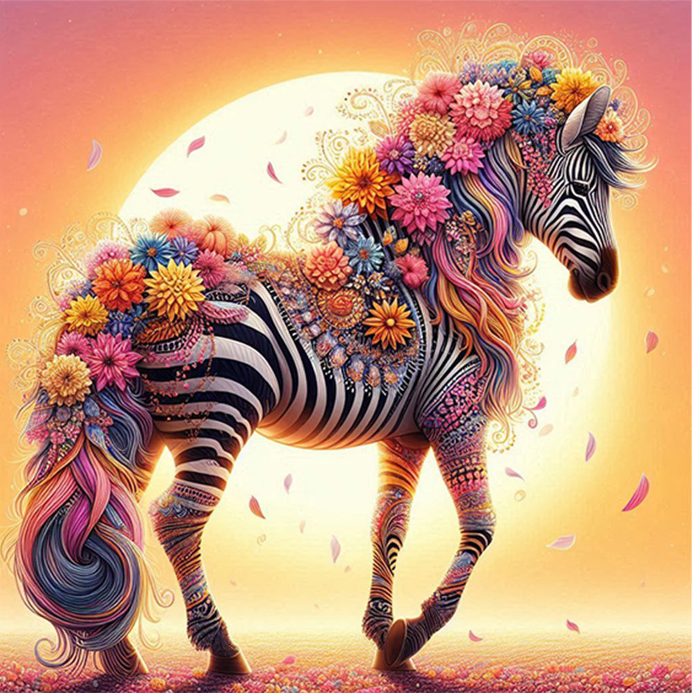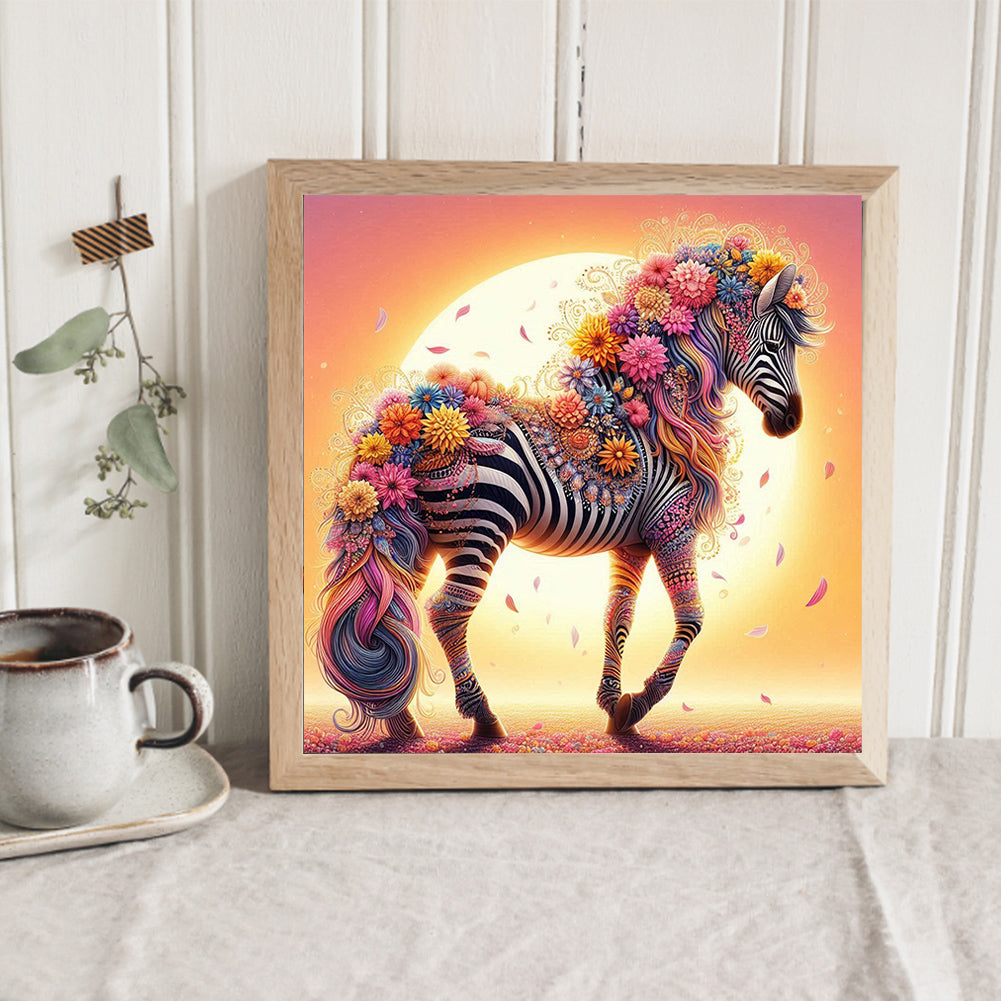 AB Diamond Painting - Full Round - Sunset flower zebra (30*30CM)