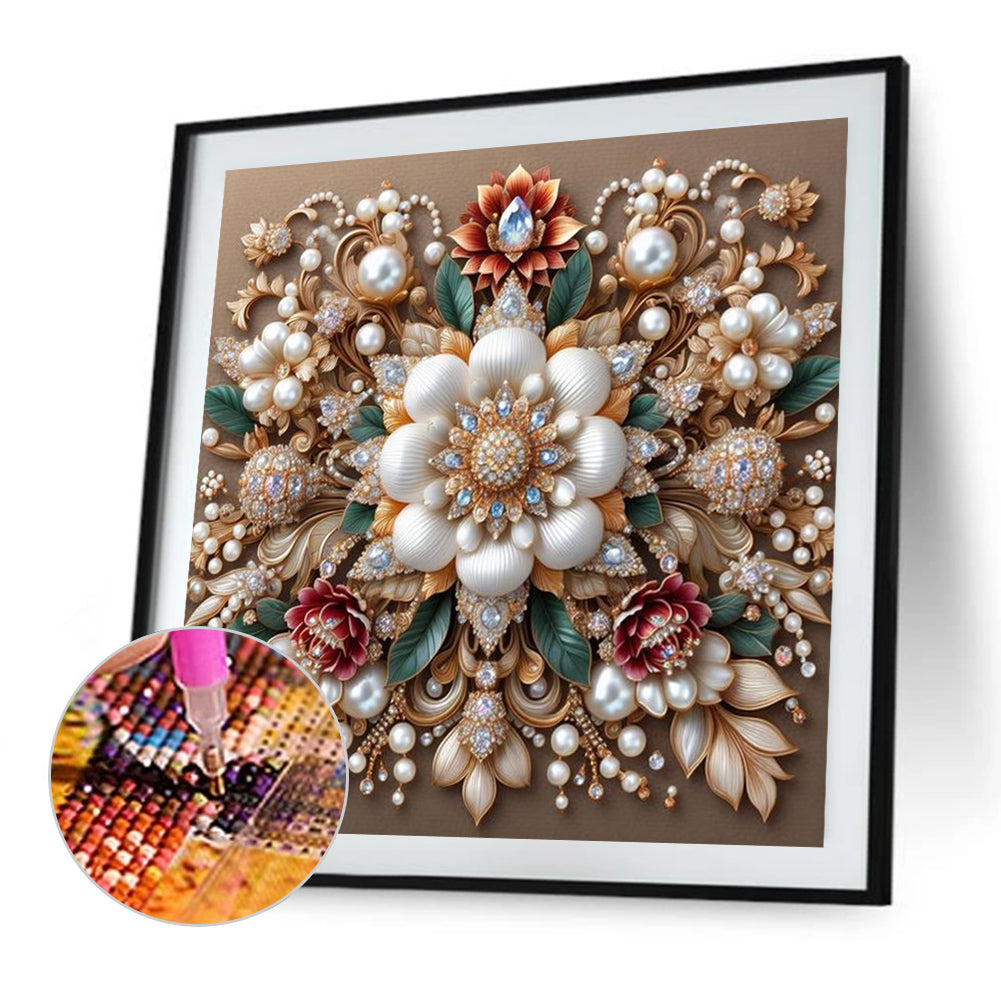 AB Diamond Painting - Full Round - white pearl flower (40*40CM)