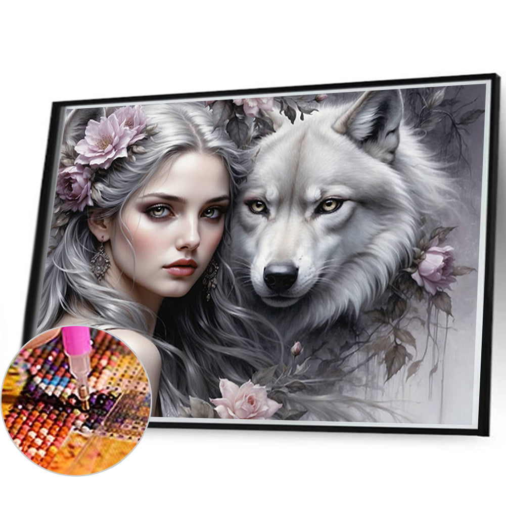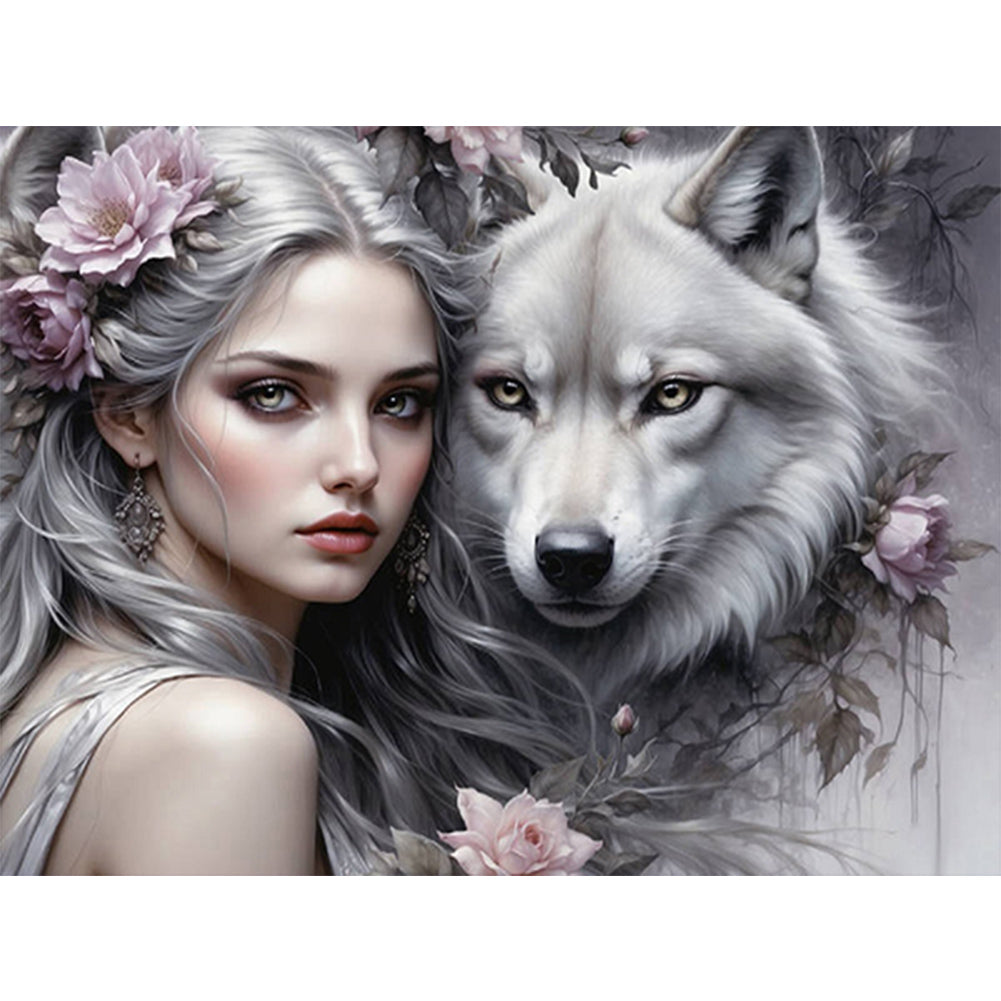 AB Diamond Painting - Full Round - Wolf and girl (60*45CM)