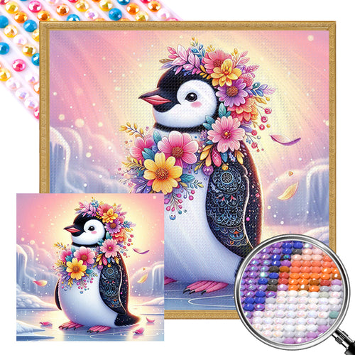 AB Diamond Painting - Full Round - Sunset flower penguin (30*30CM)