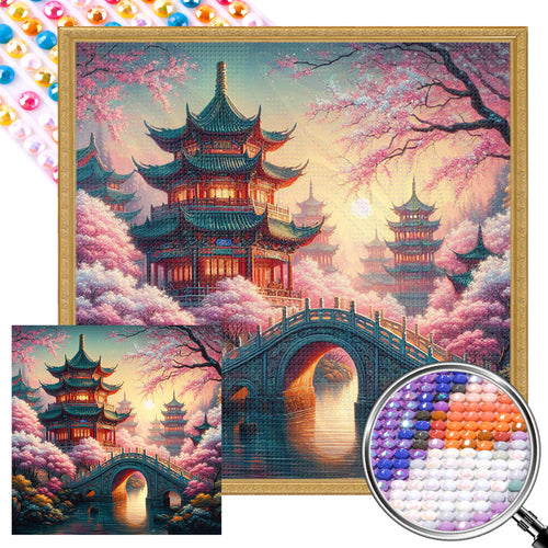AB Diamond Painting - Full Round - Small bridge and pavilion (40*40CM)