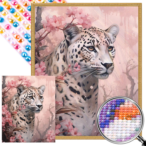 AB Diamond Painting - Full Round - Leopard among flowers (40*50CM)