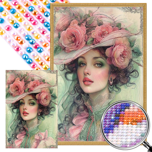 AB Diamond Painting - Full Round - flower hat girl (40*60CM)