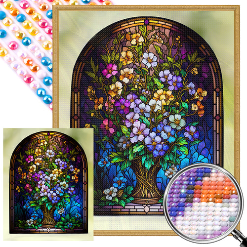 AB Diamond Painting - Full Round - Glass Window Flowers (40*50CM)
