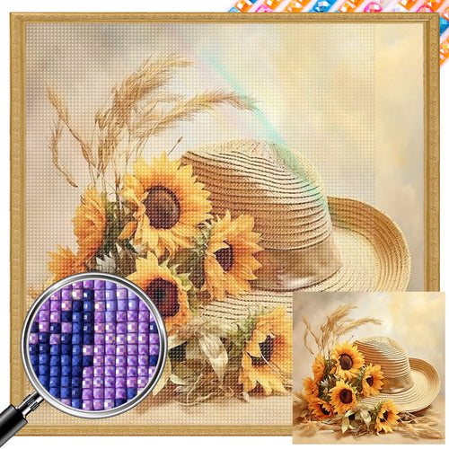 AB Diamond Painting - Full Square - Sunflower and straw hat (40*40CM)