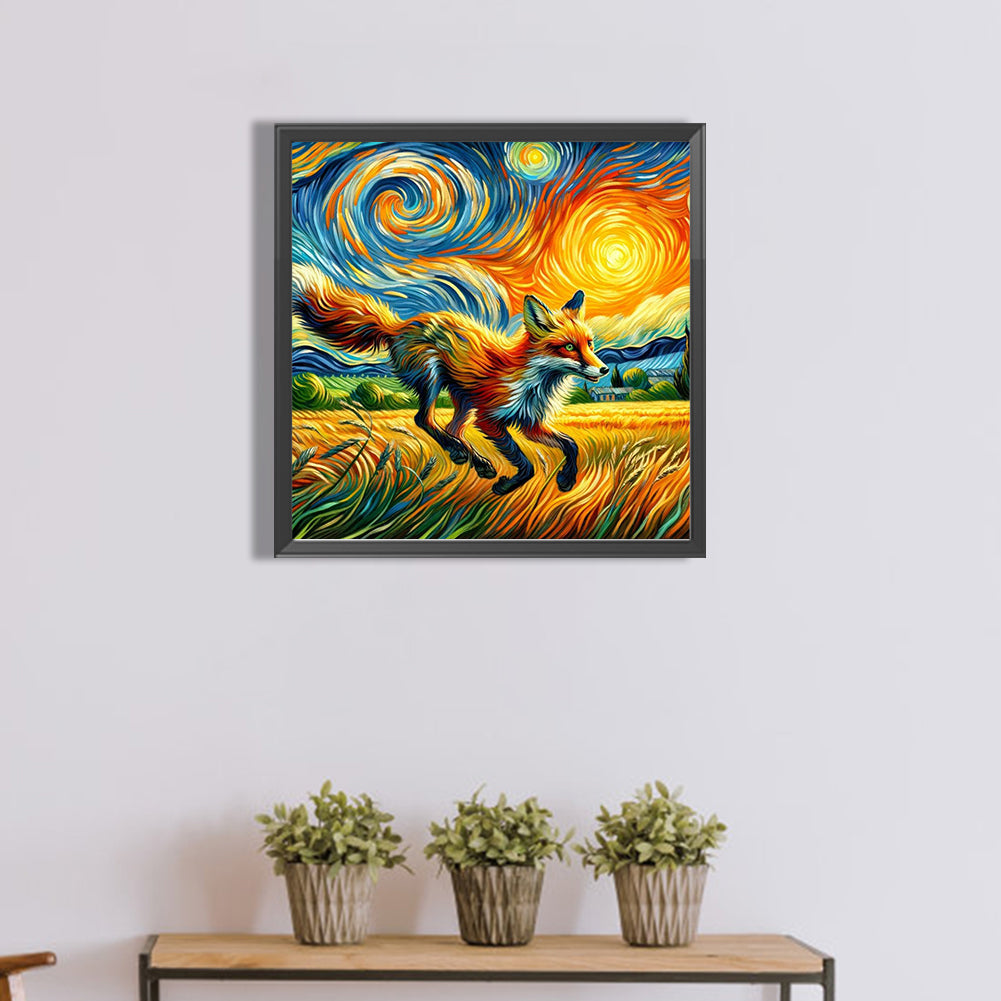 Diamond Painting - Full Round - Colored lead painting of rice field fox (40*40CM)