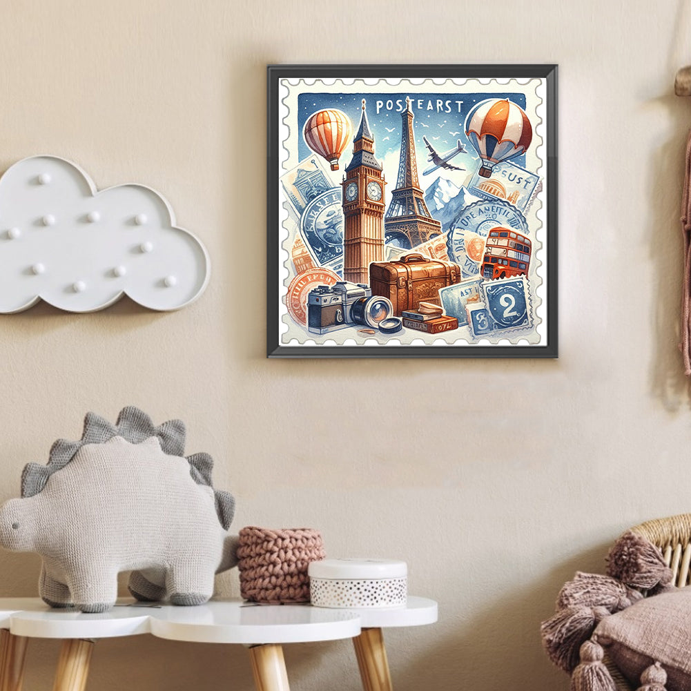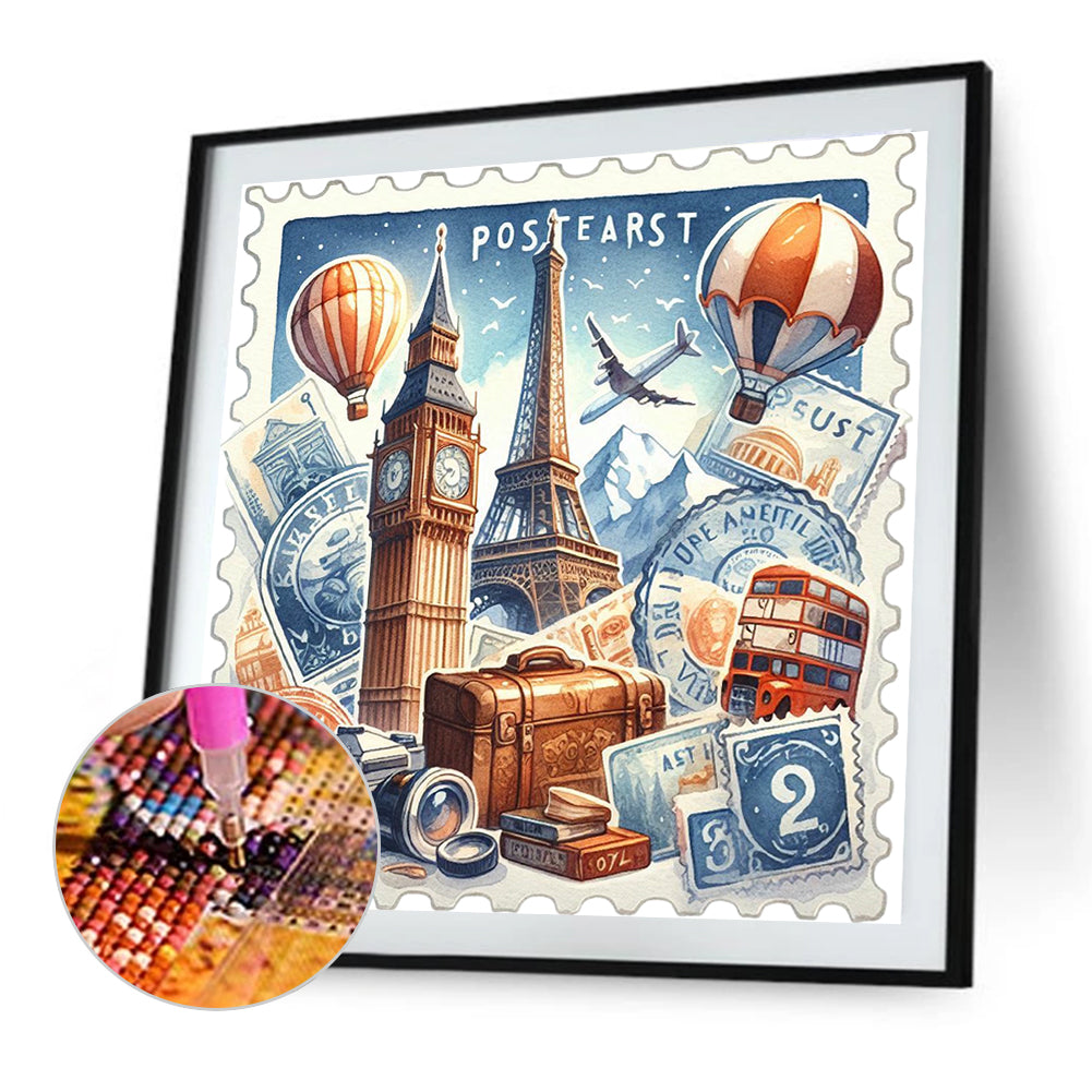 Diamond Painting - Full Round - Famous Buildings With Stamps (30*30CM)