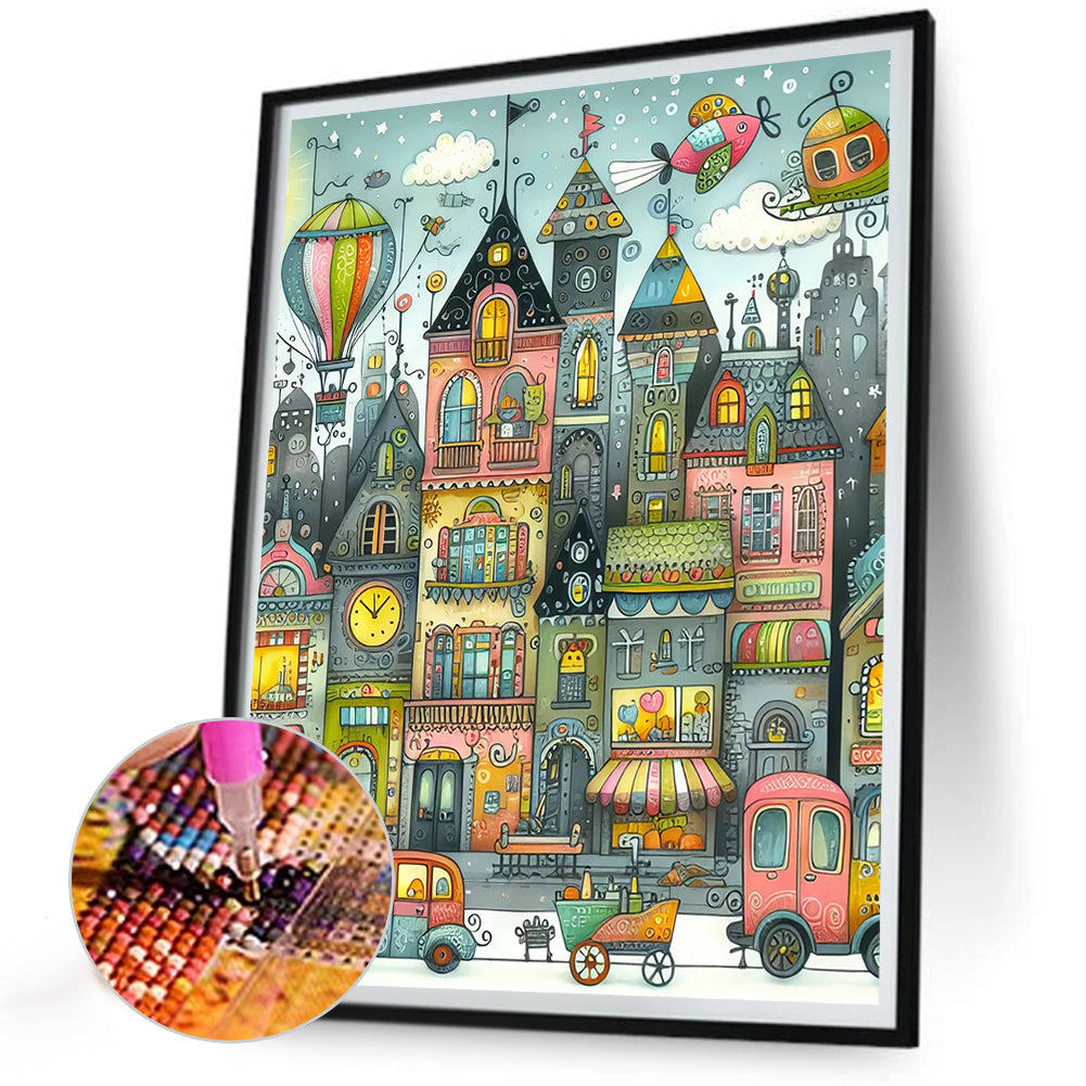 Diamond Painting - Full Round - Fantasy abstract colorful building (30*40CM)