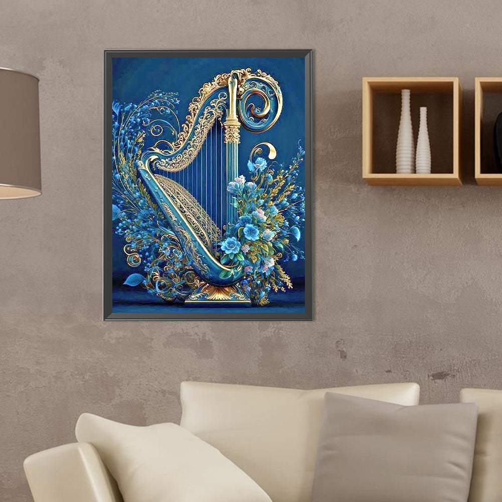 Diamond Painting - Full Round - flowers and harp (30*40CM)