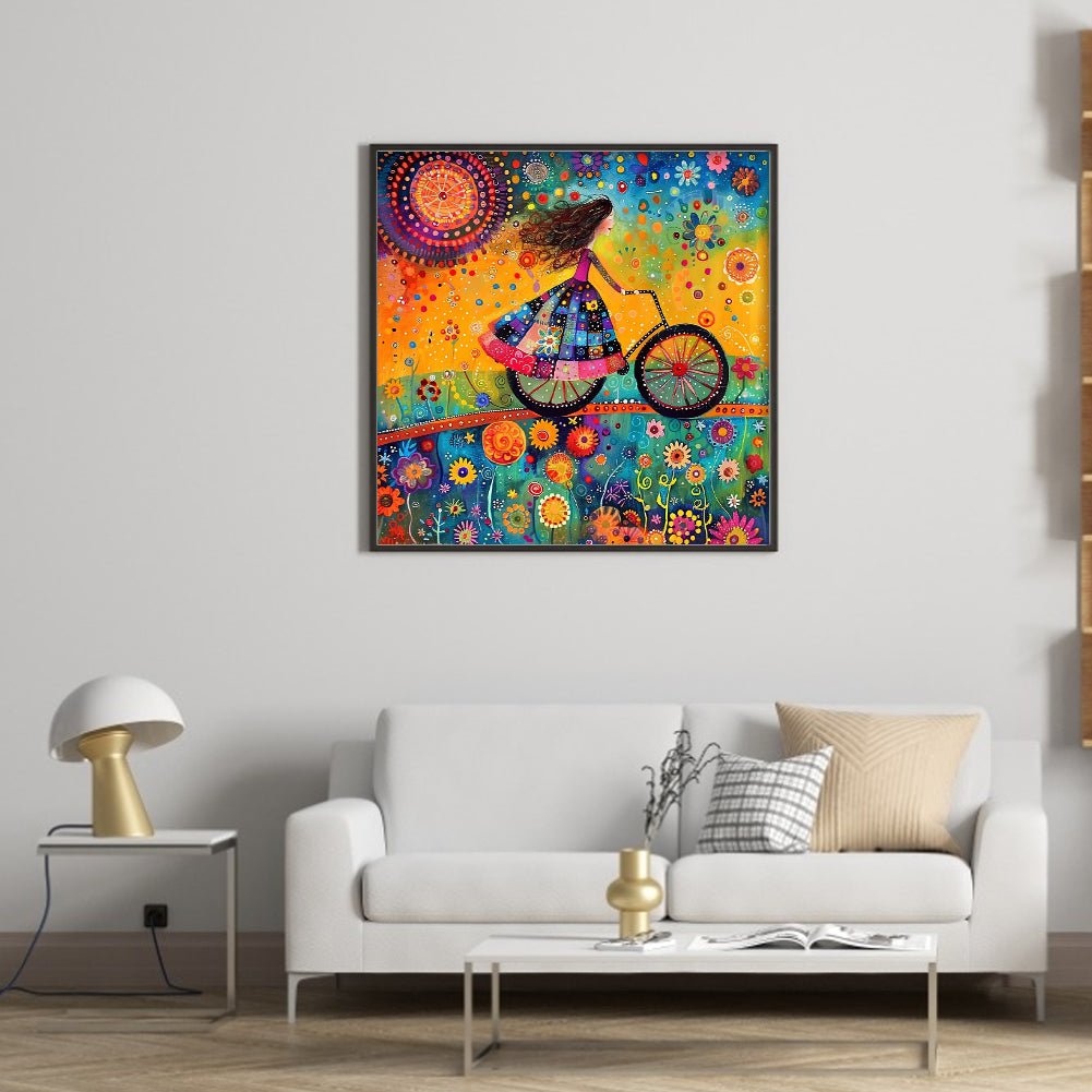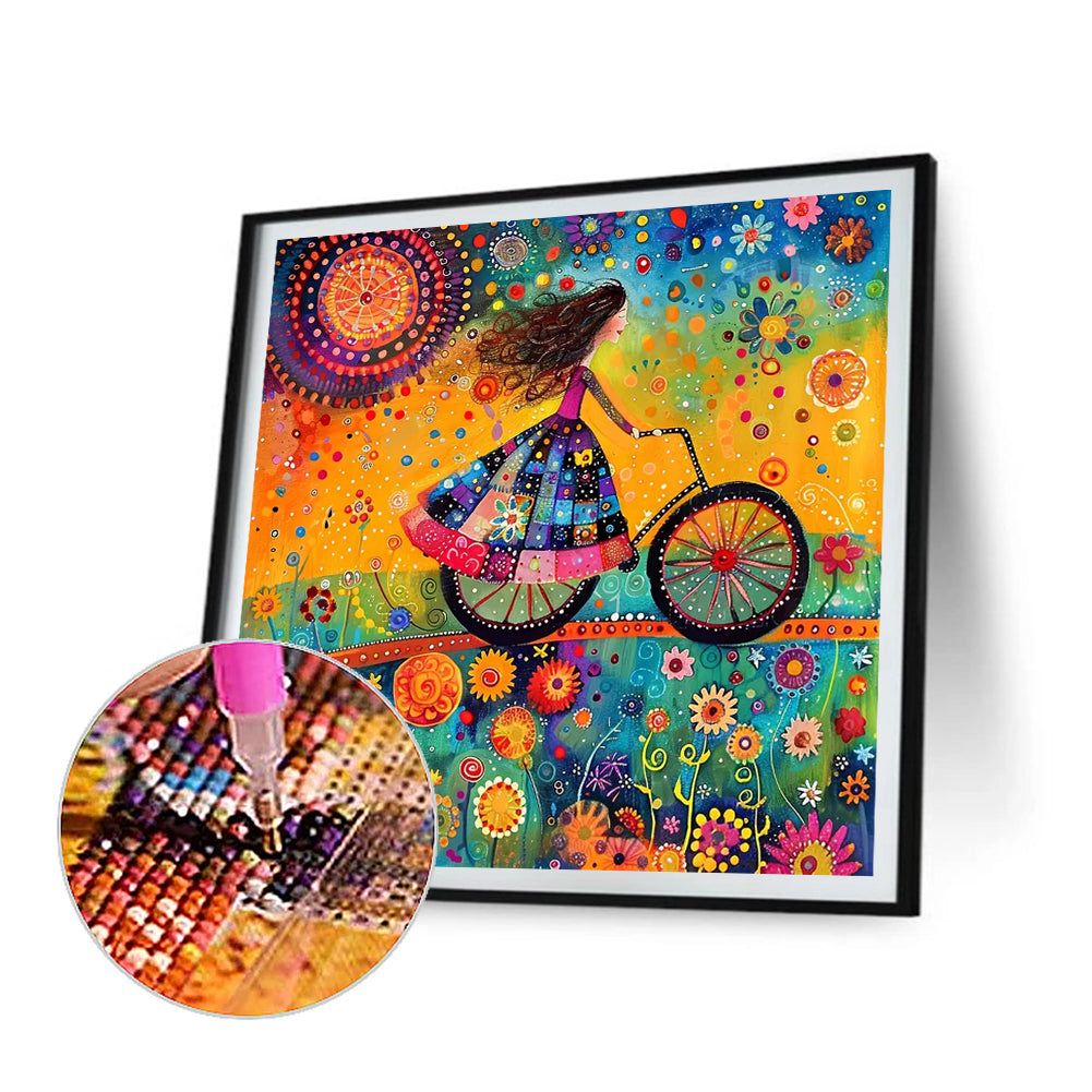 Diamond Painting - Full Round - Girl riding a bicycle (40*40CM)