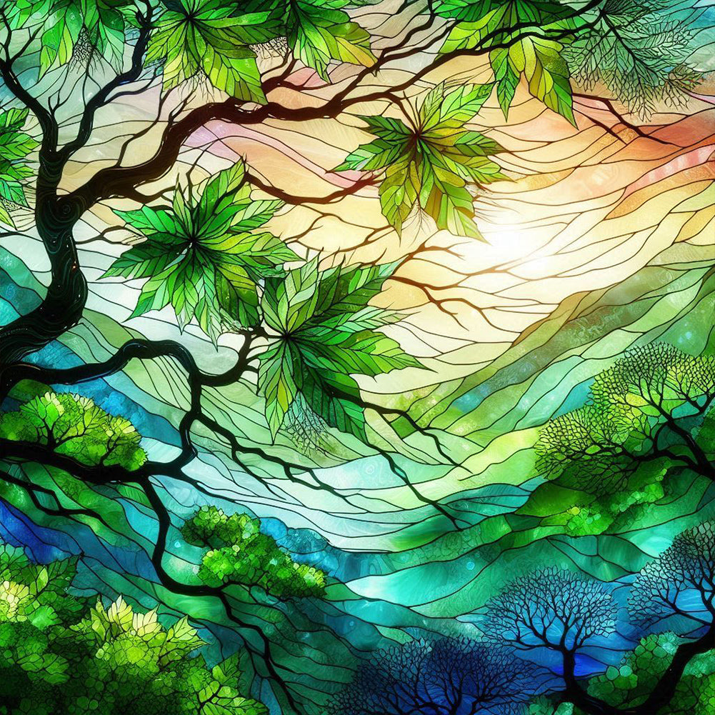 Diamond Painting - Full Round - Glass art green maple leaves (30*30CM)