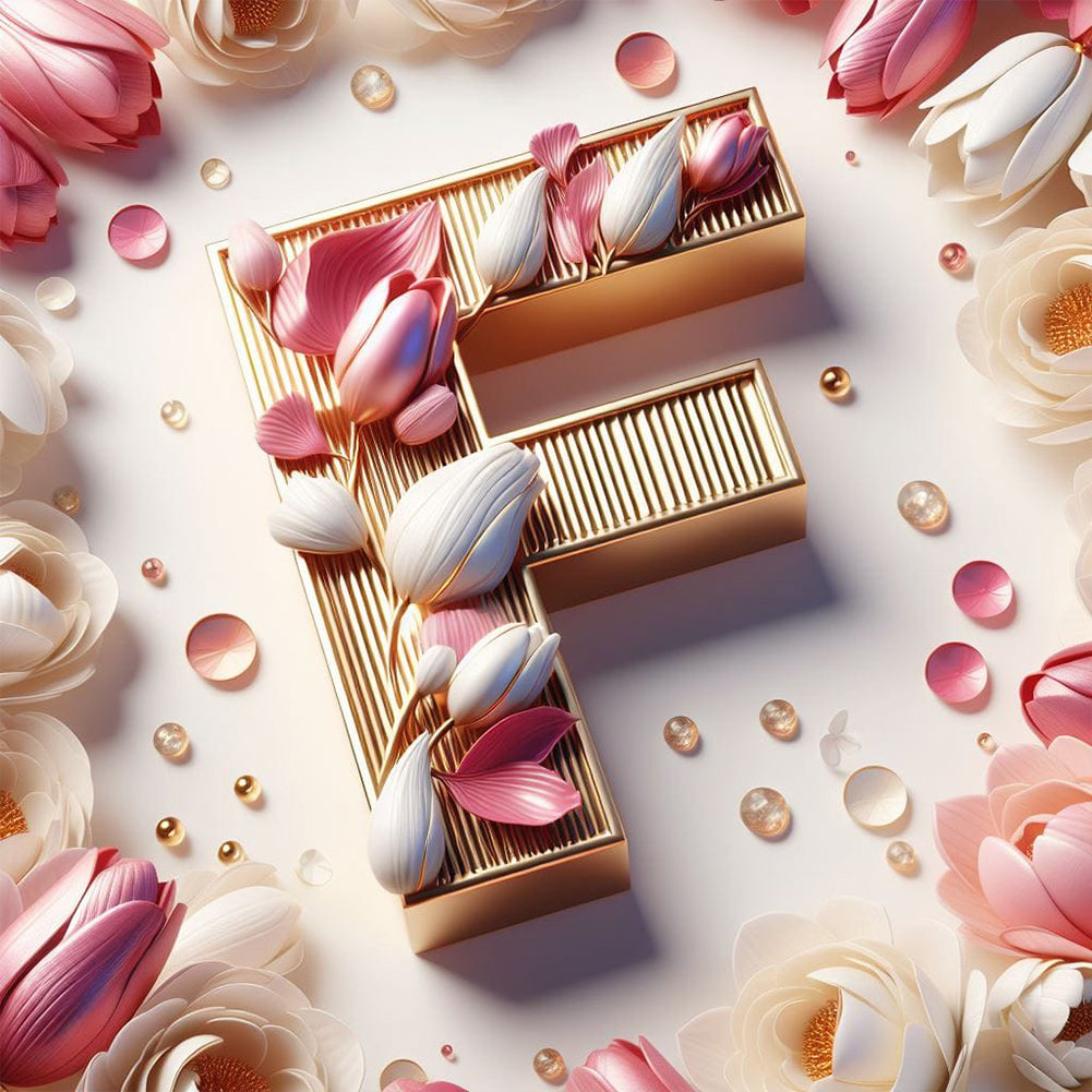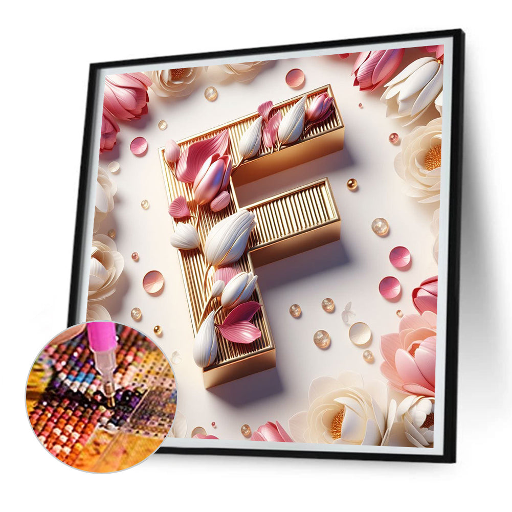 Diamond Painting - Full Round - Pink flower letter F (30*30CM)