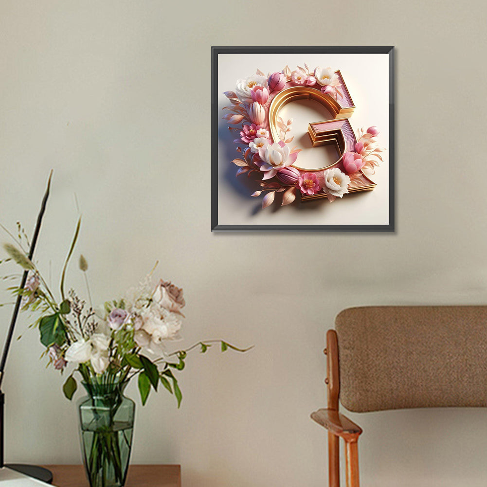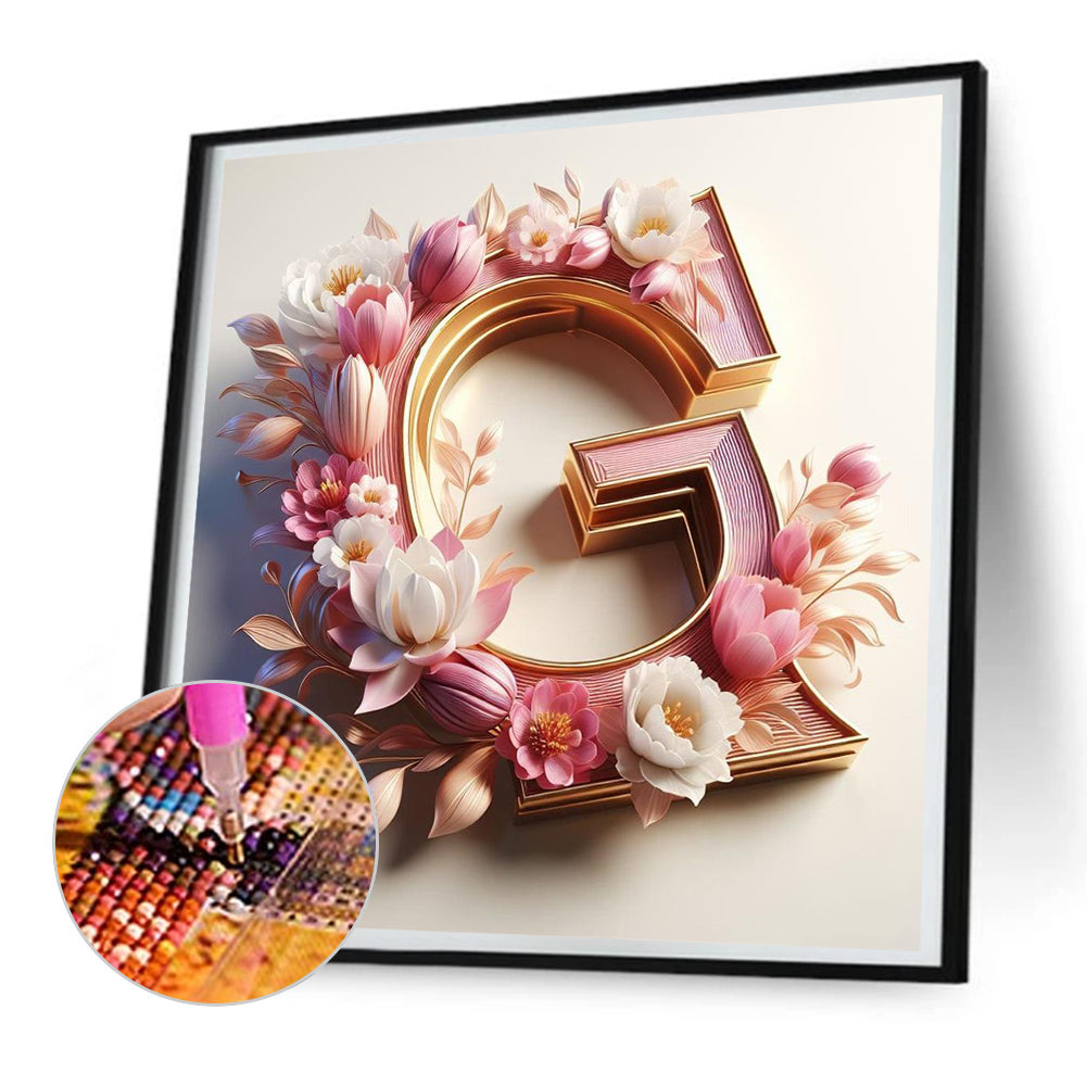 Diamond Painting - Full Round - pink flower letter G (30*30CM)