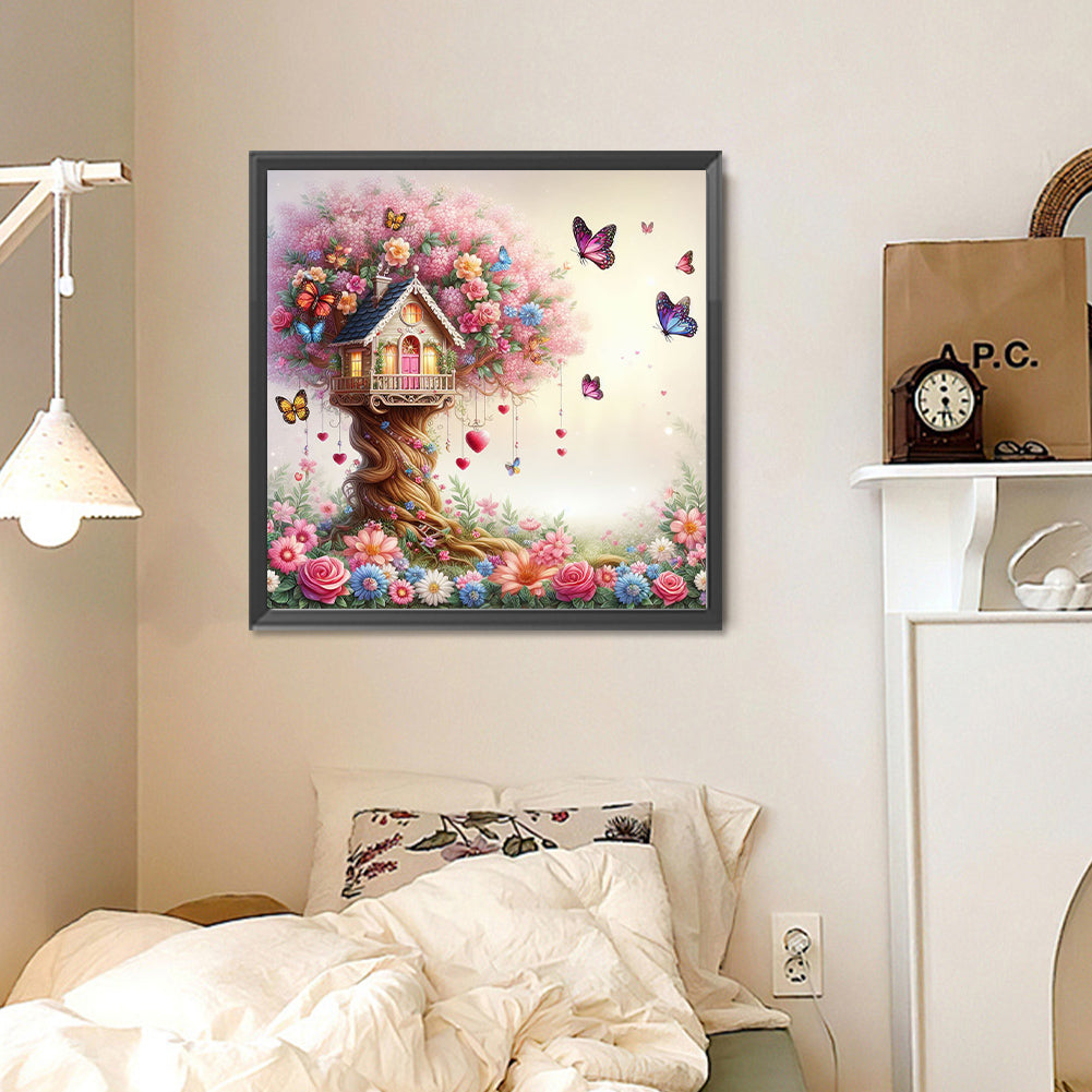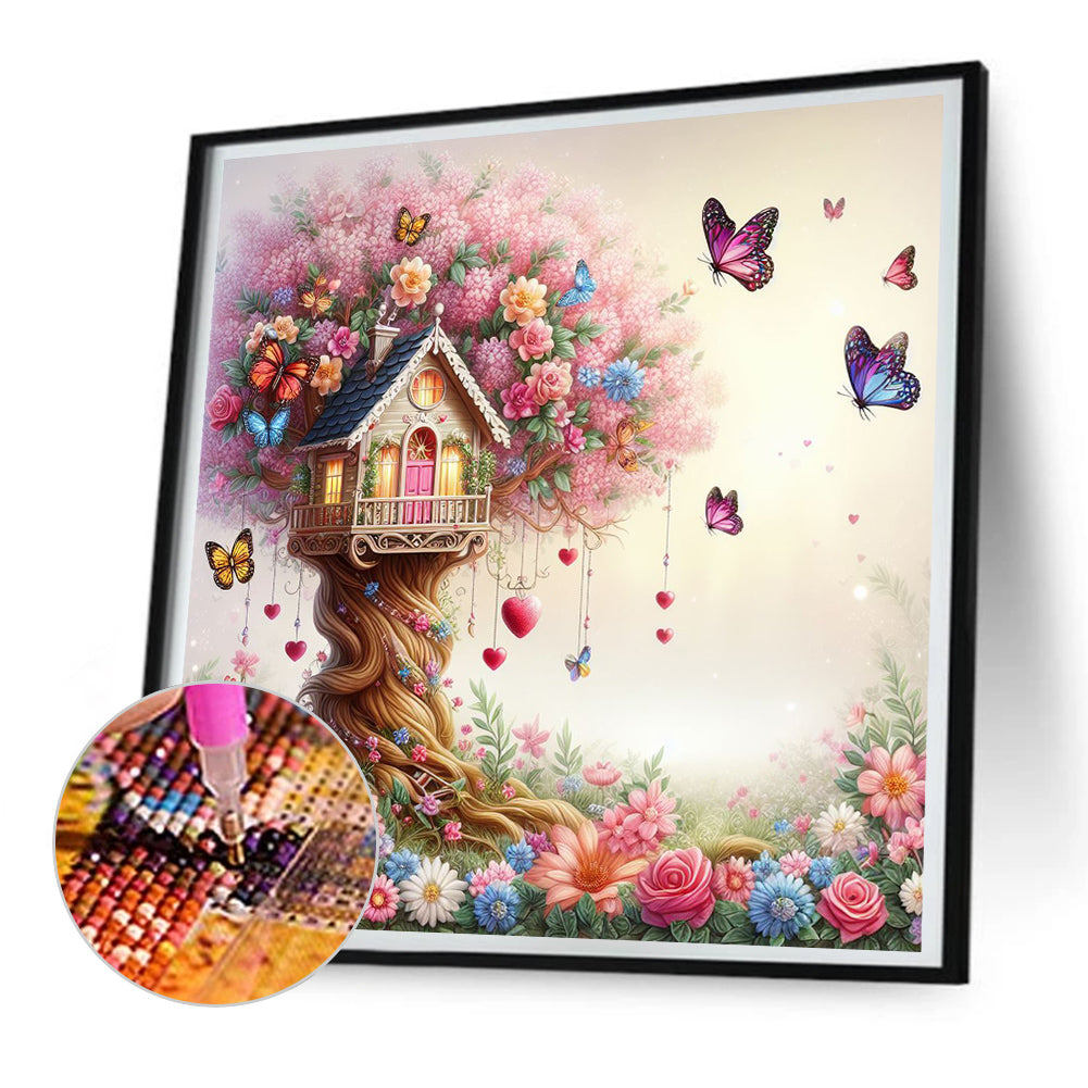 Diamond Painting - Full Round - Pink tree small house (30*30CM)