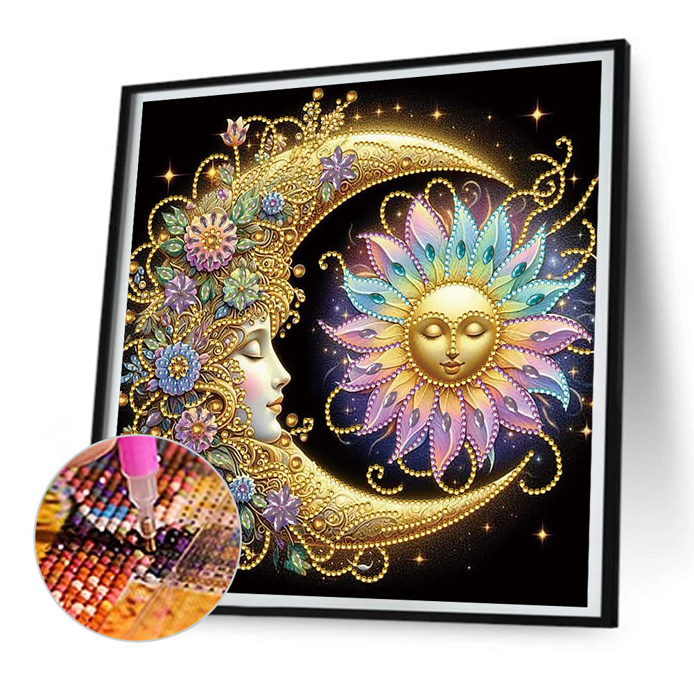 Diamond Painting - Partial Special Shaped - Flowers, stars and moon (30*30CM)