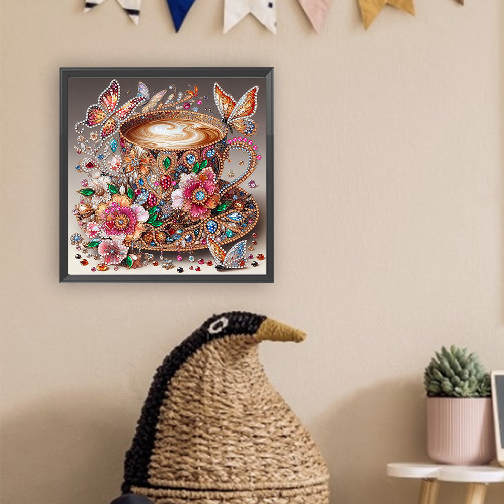 Diamond Painting - Partial Special Shaped - Gorgeous butterfly coffee (30*30CM)