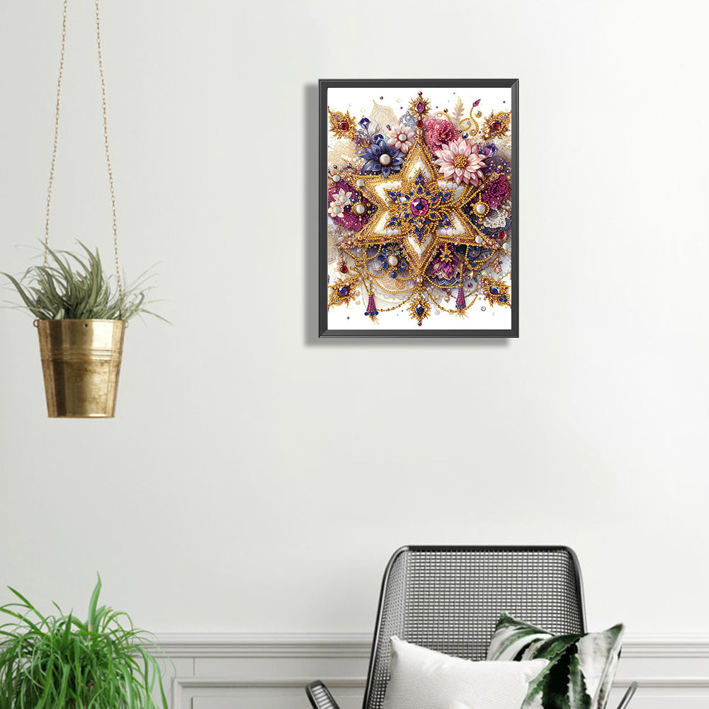 Diamond Painting - Partial Special Shaped - six pointed star and flower (30*30CM)