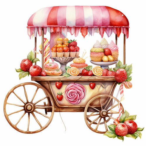 Diamond Painting - Full Round - Pink dessert shop trolley (30*30CM)