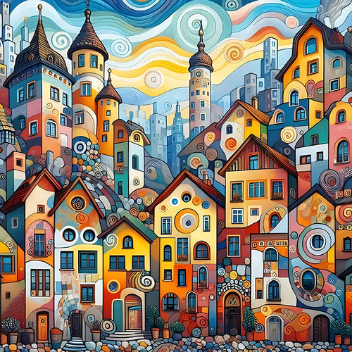 Diamond Painting - Full Round - abstract color houses (50*50CM)