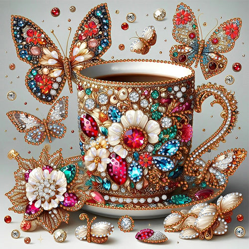 Diamond Painting - Partial Special Shaped - Gorgeous butterfly coffee (30*30CM)